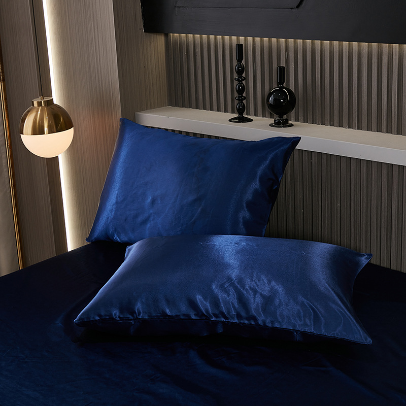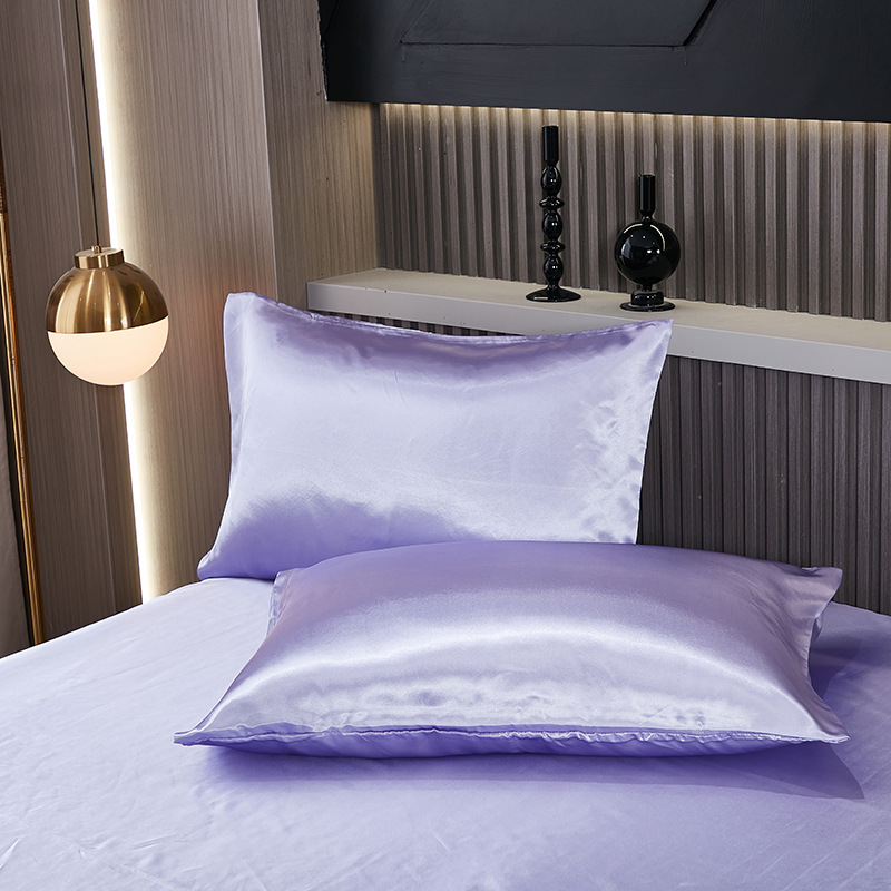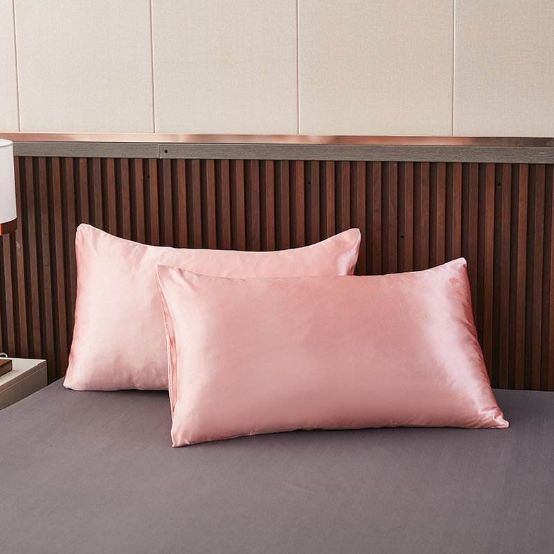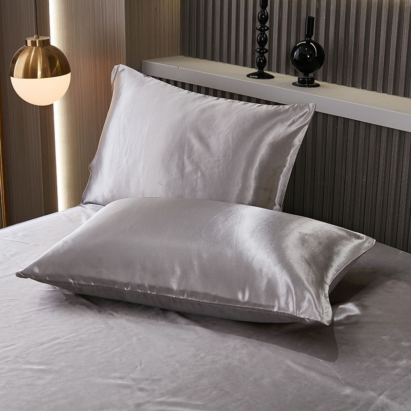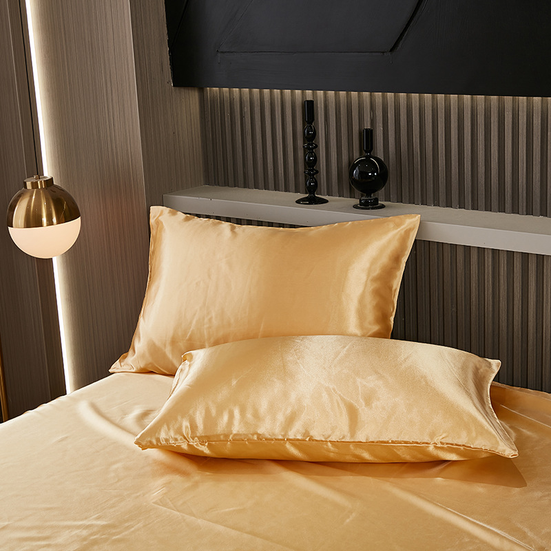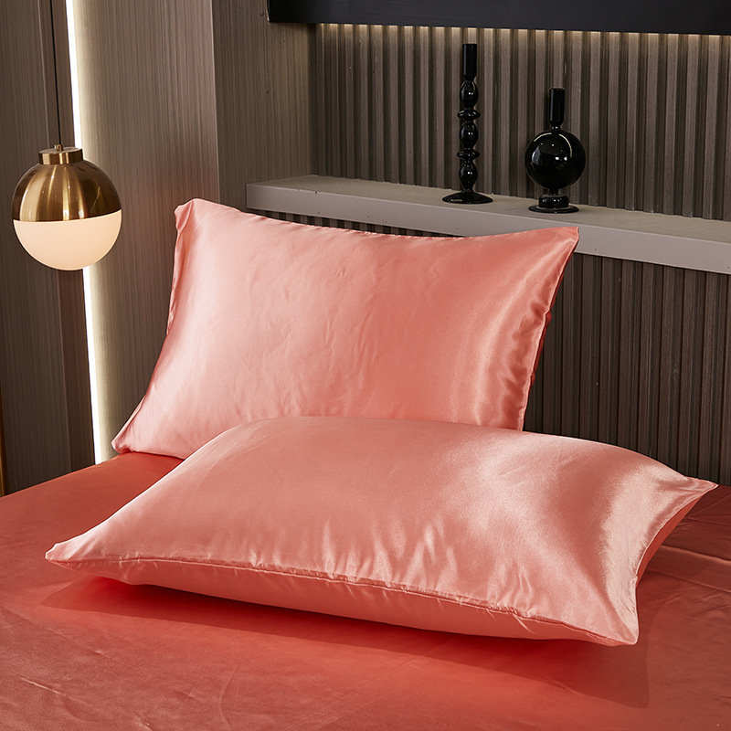 foreign trade summer pure color satin artificial silk pillowcase one-pair package light luxury washable cool feeling artificial silk single pillowcase 中文版