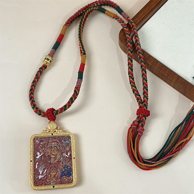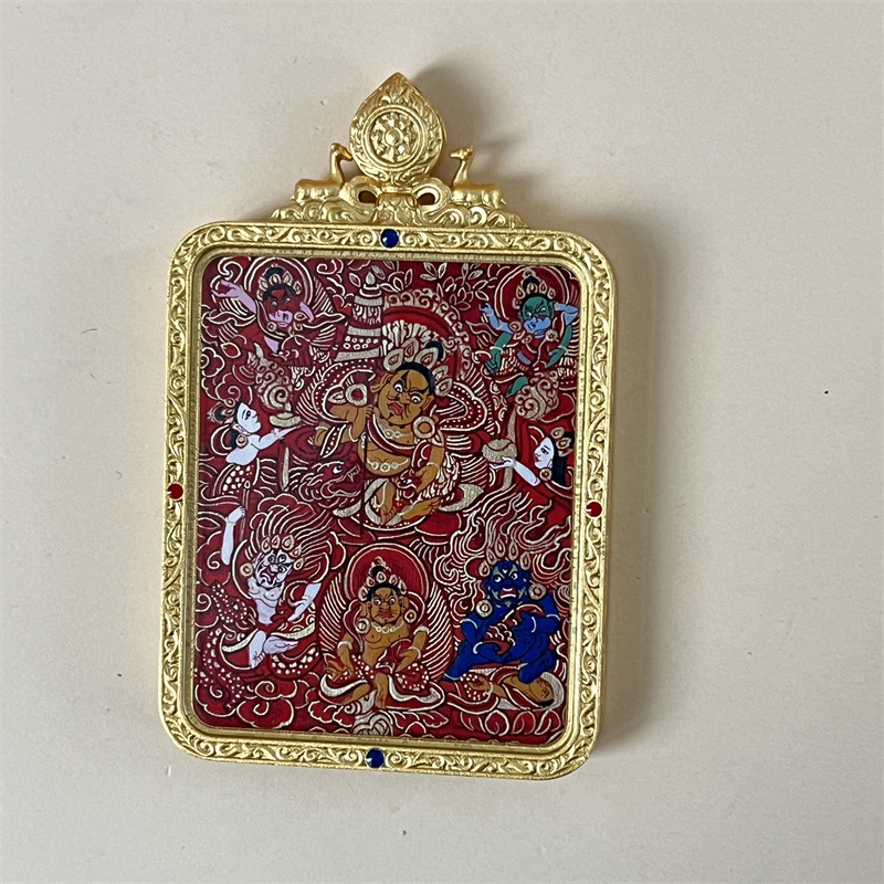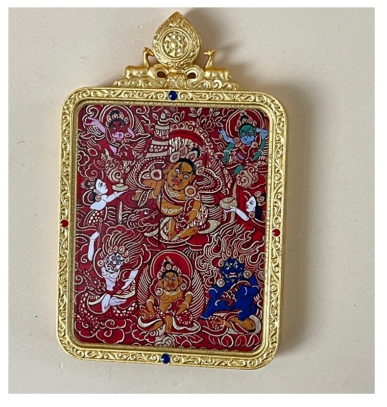 meizhong thangka regong hand-painted manshu white tower double-sided three-dimensional thangka yellow god of wealth pendant in stock wholesale 中文版