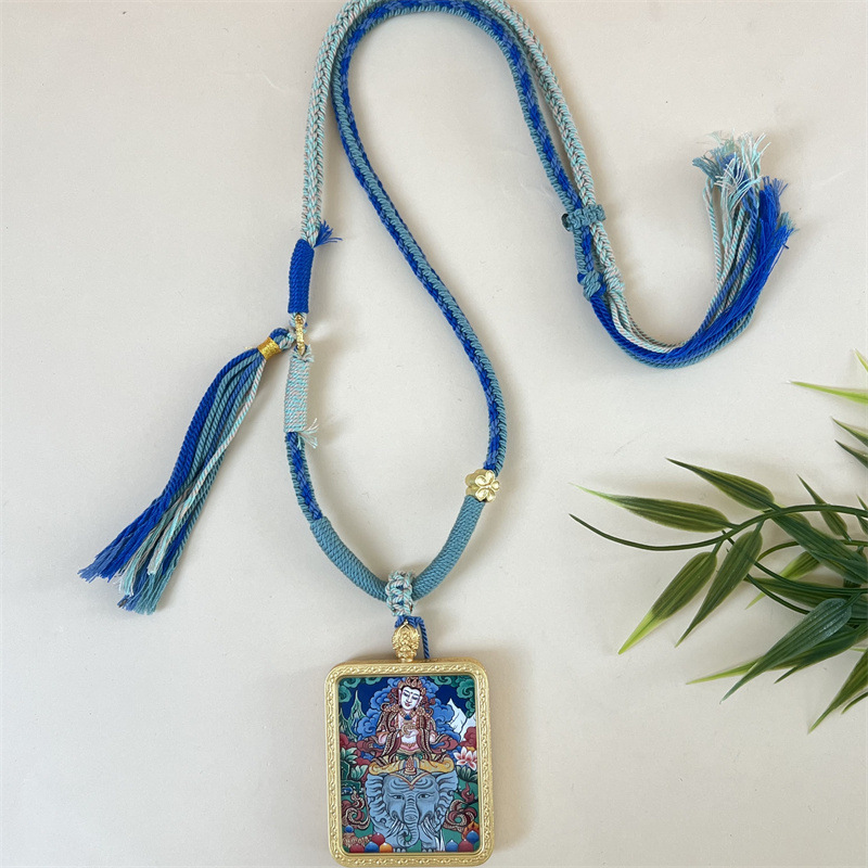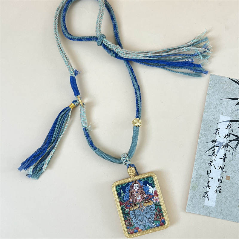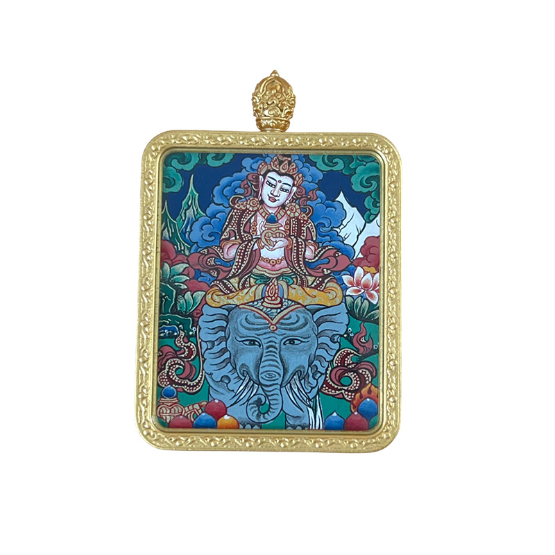 meizhong thangka regong hand-painted new three-dimensional brass puxian painted thangka pendant in stock wholesale 中文版