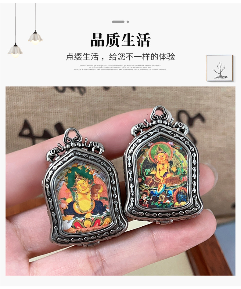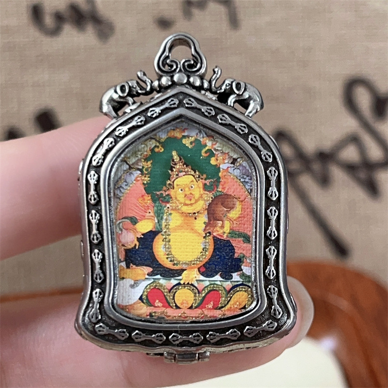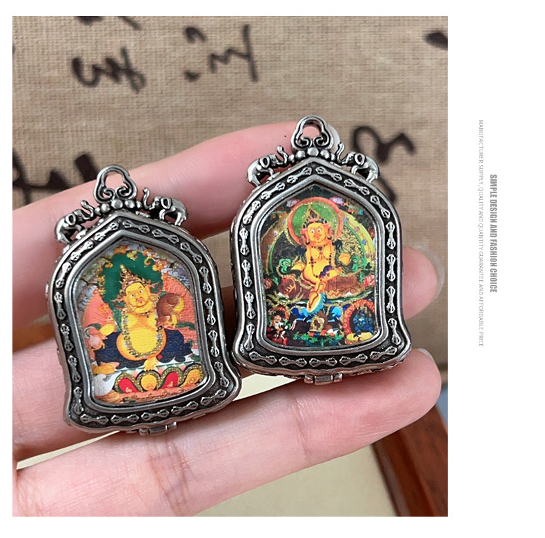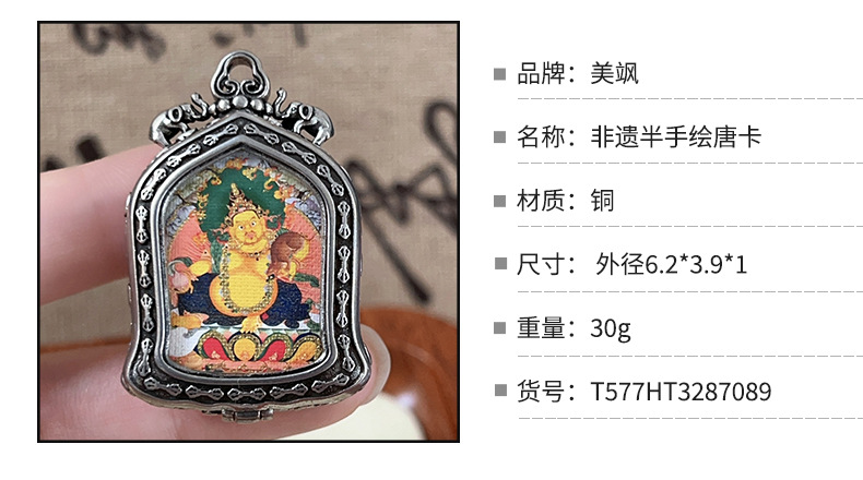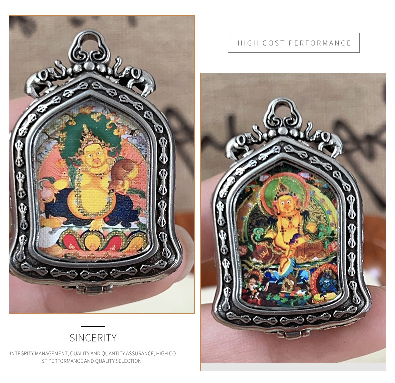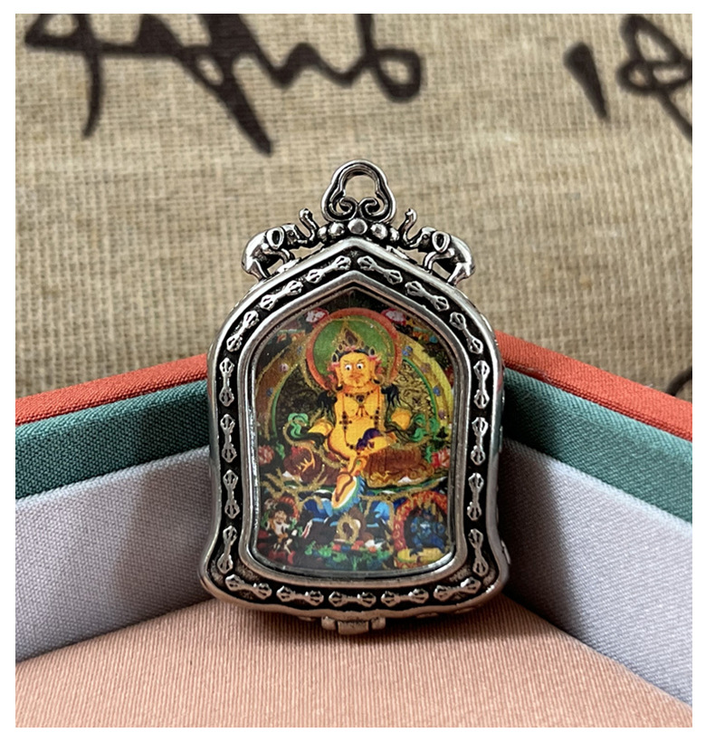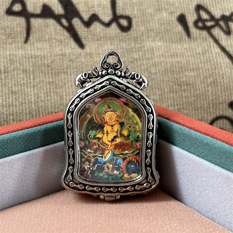 meizhong thangka half painted tibetan style small thangka pendant copper tibetan style niche for a statue of the buddha gold-painted yellow god of wealth pendant 中文版