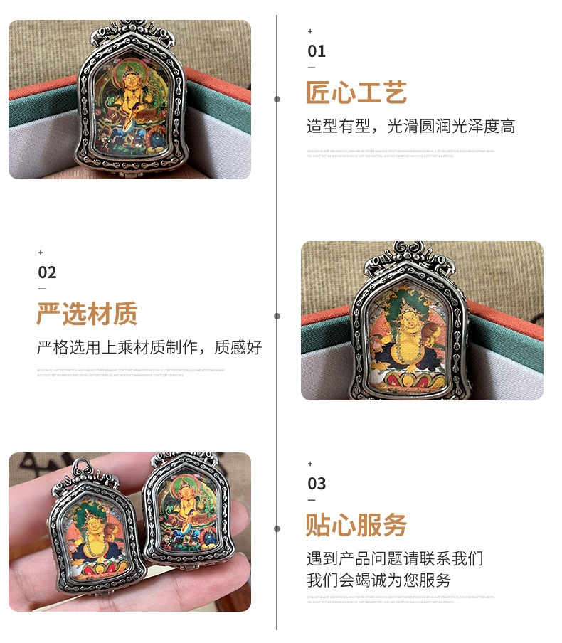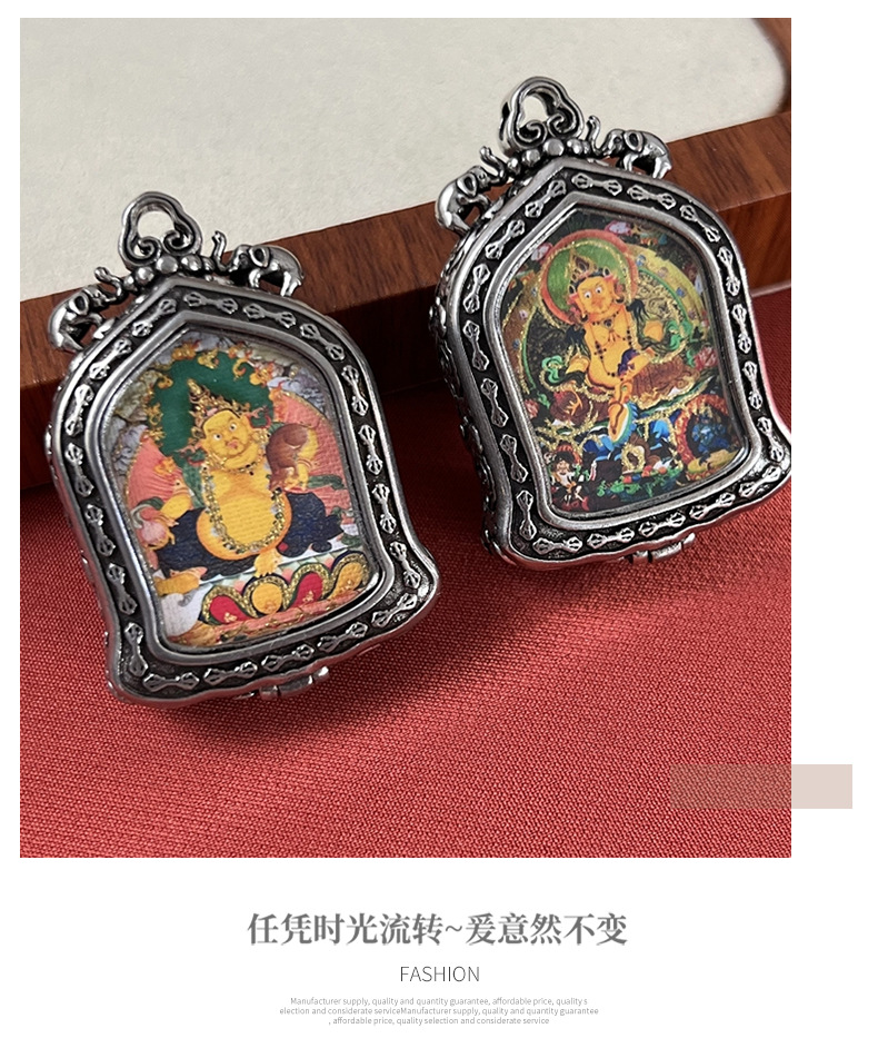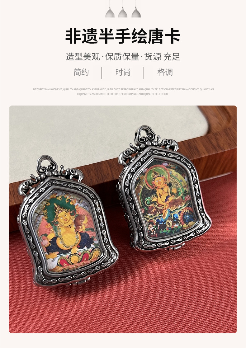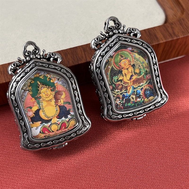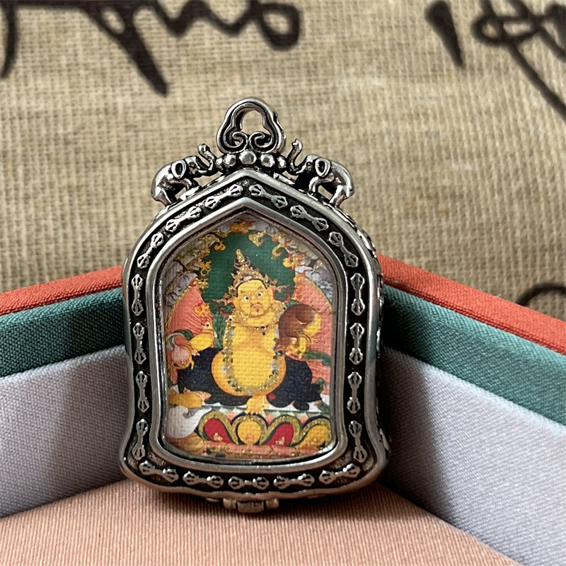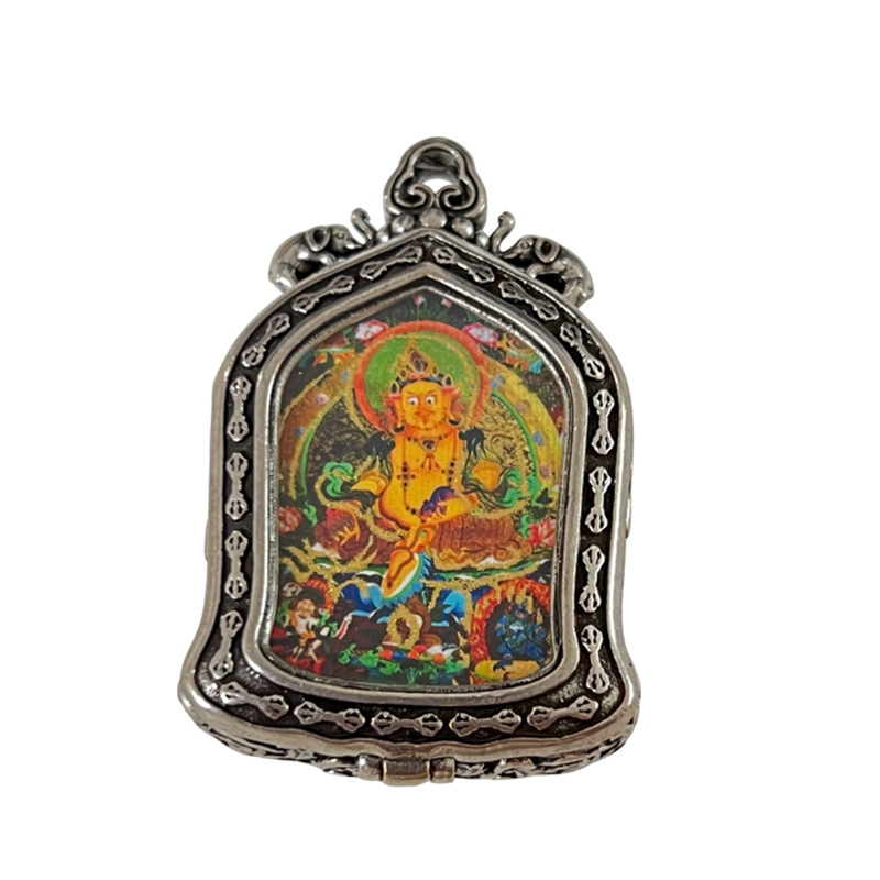 meizhong thangka half painted tibetan style small thangka pendant copper tibetan style niche for a statue of the buddha gold-painted yellow god of wealth pendant 中文版