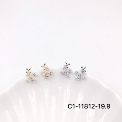 925 silver needle copper plated real gold inlaid zircon exquisite four-leaf clover elegant ear studs fashion all-match 中文版