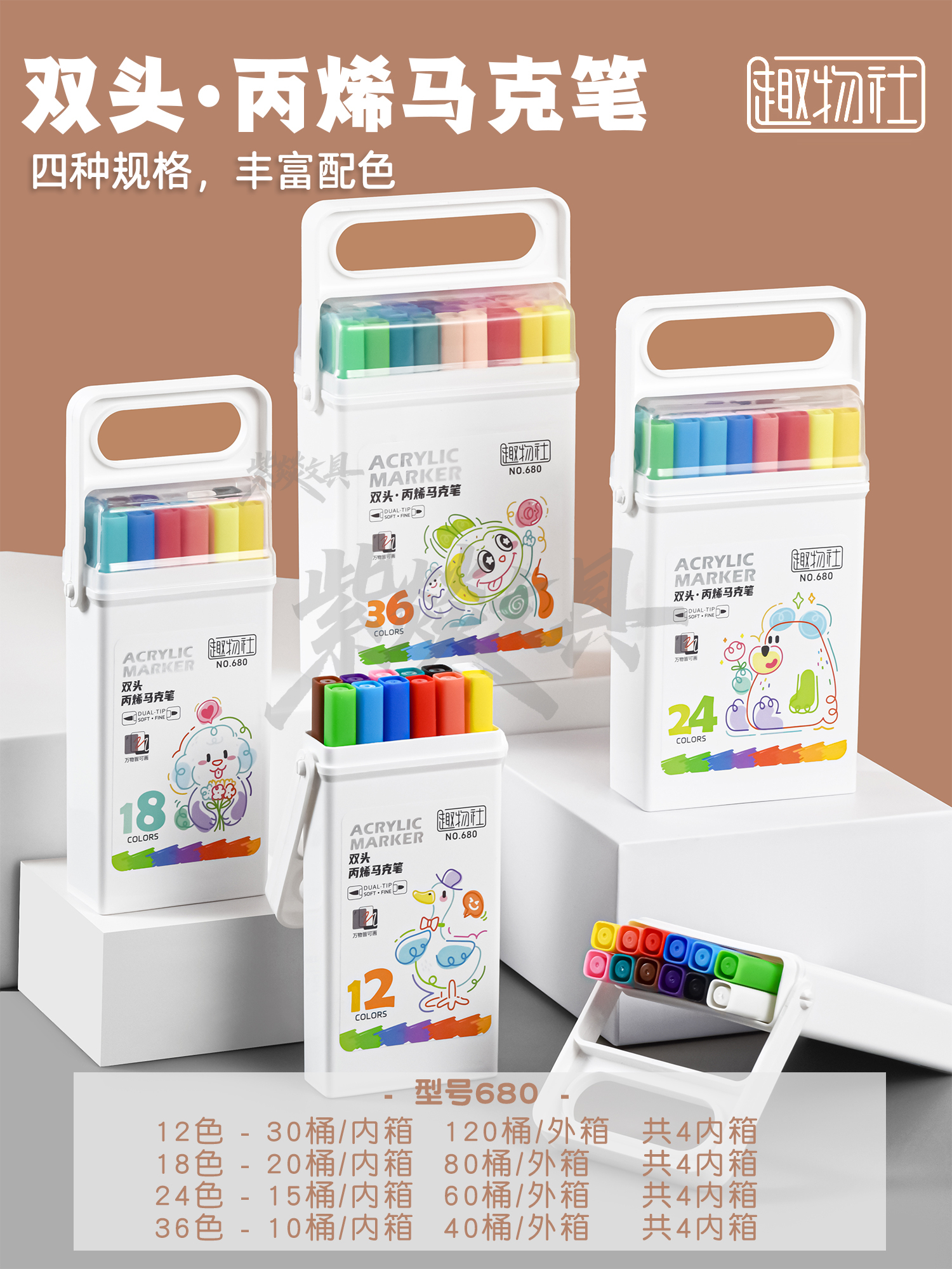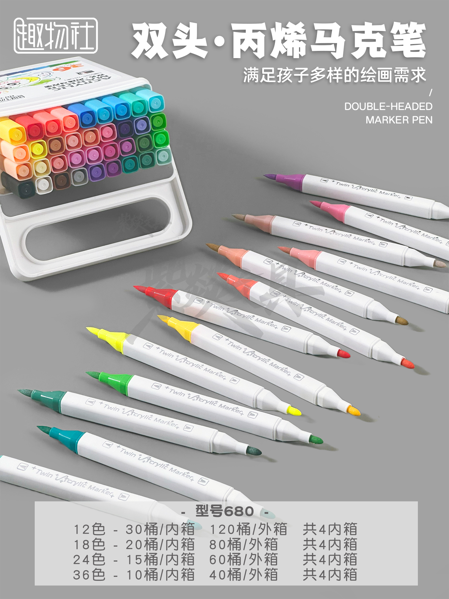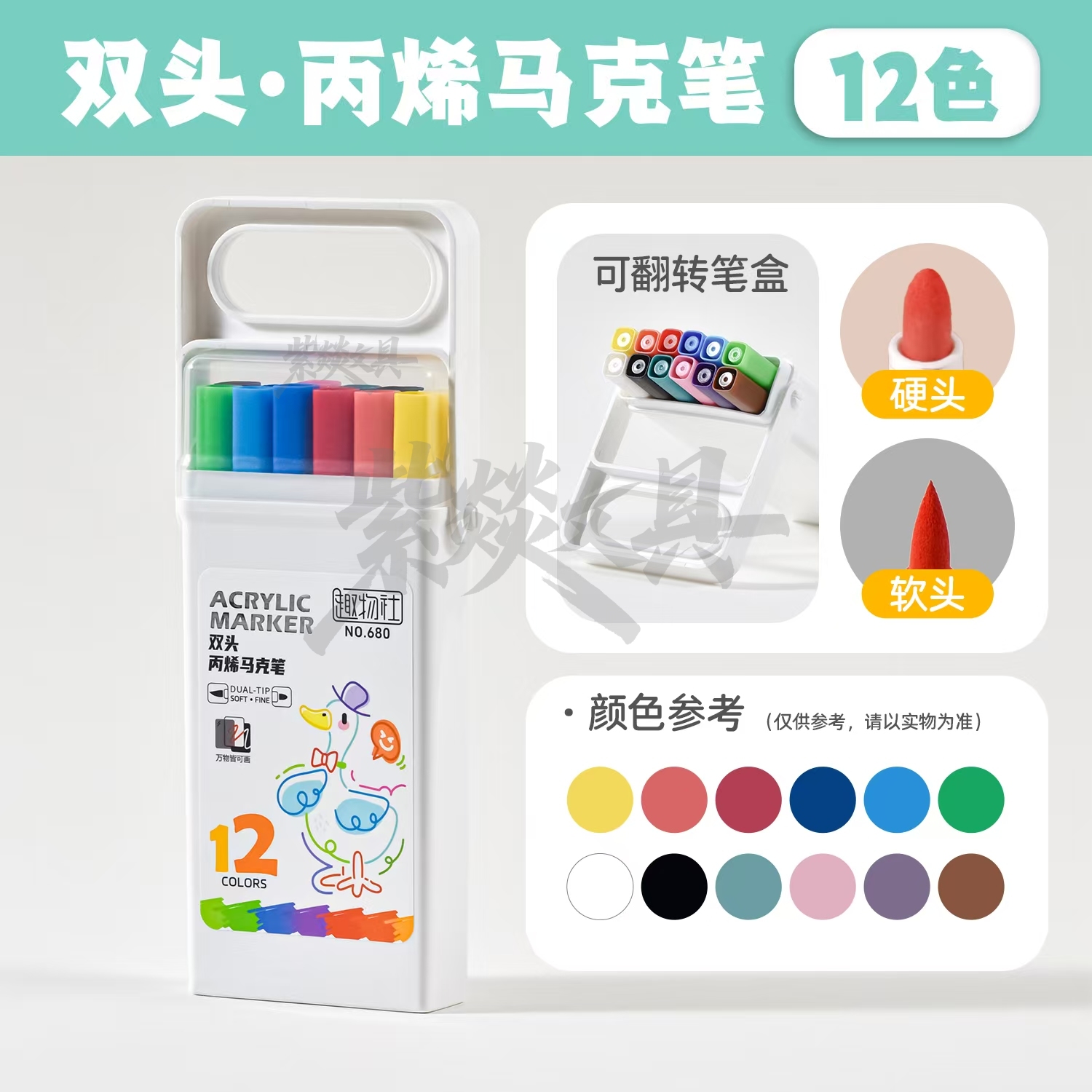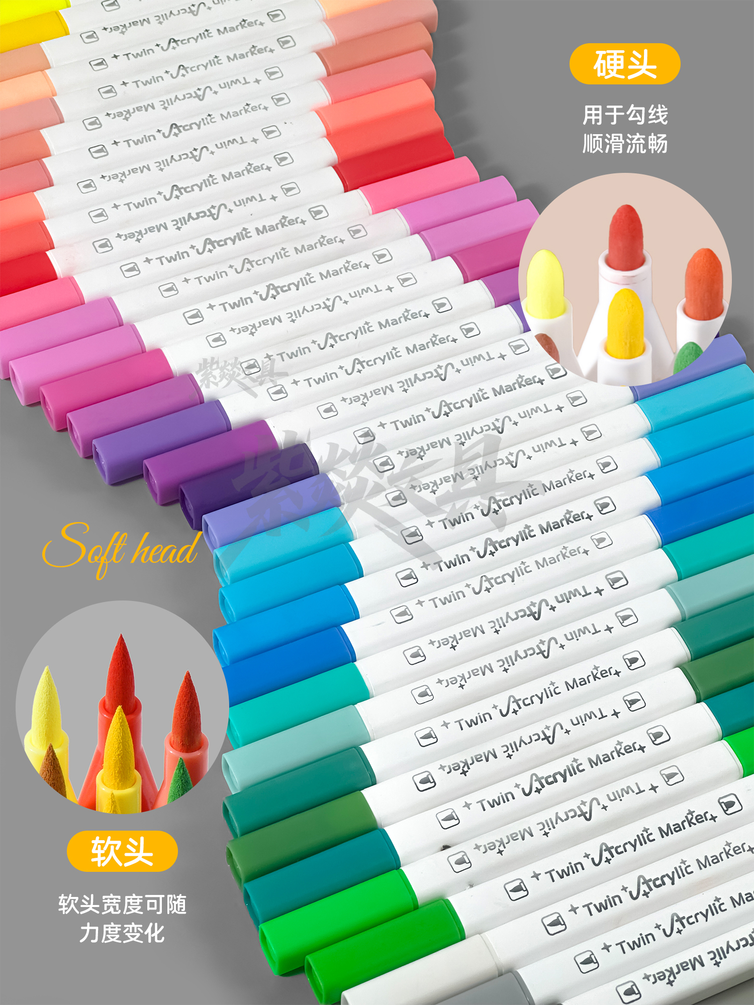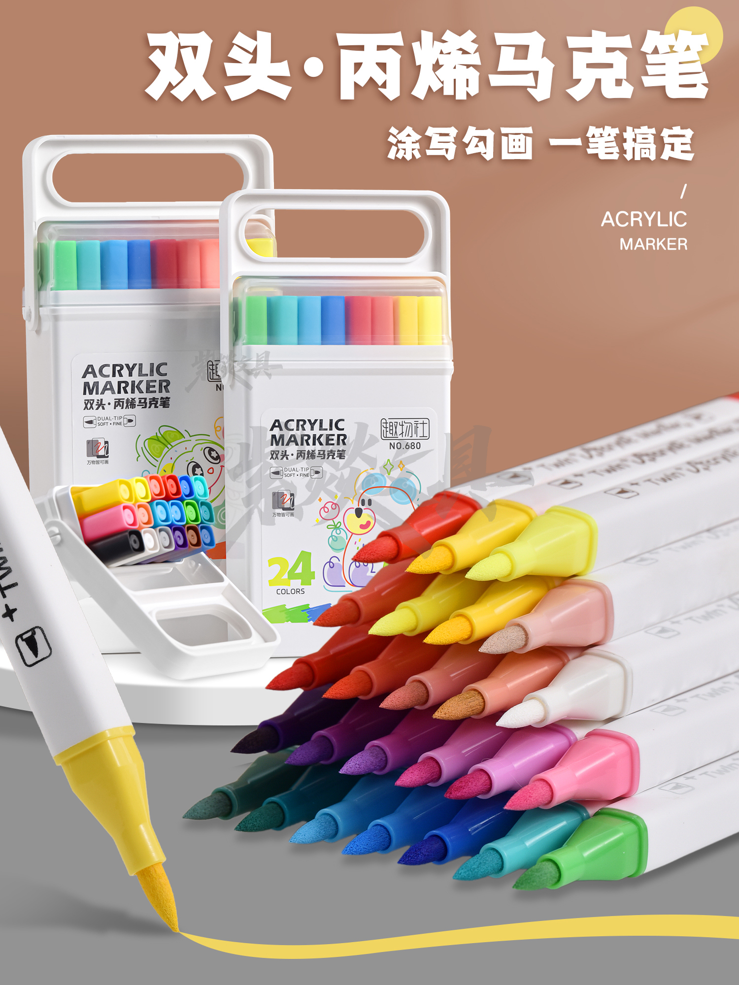 double-headed acrylic marker pen only for pupils opaque color stackable only for art soft-headed double-headed brush 中文版