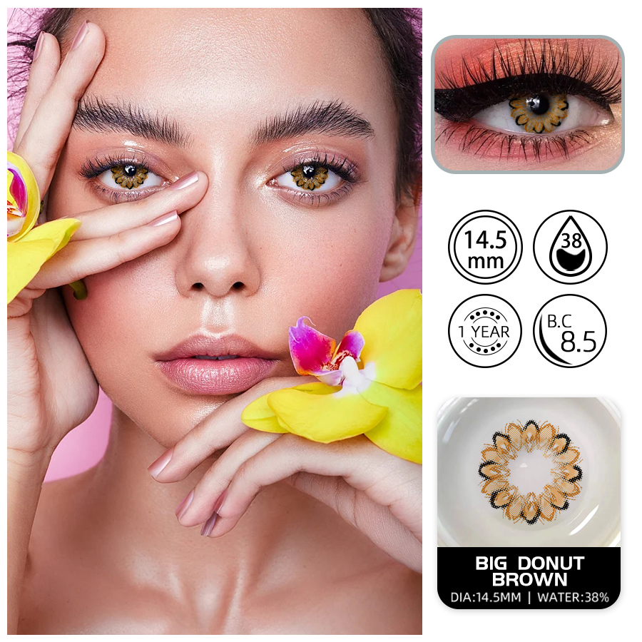big donut-brown annual color contact lens foreign trade pp pack 14.5mm plain light 0 degrees 中文版