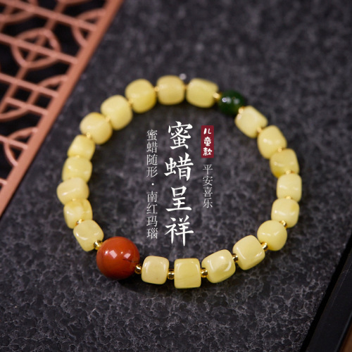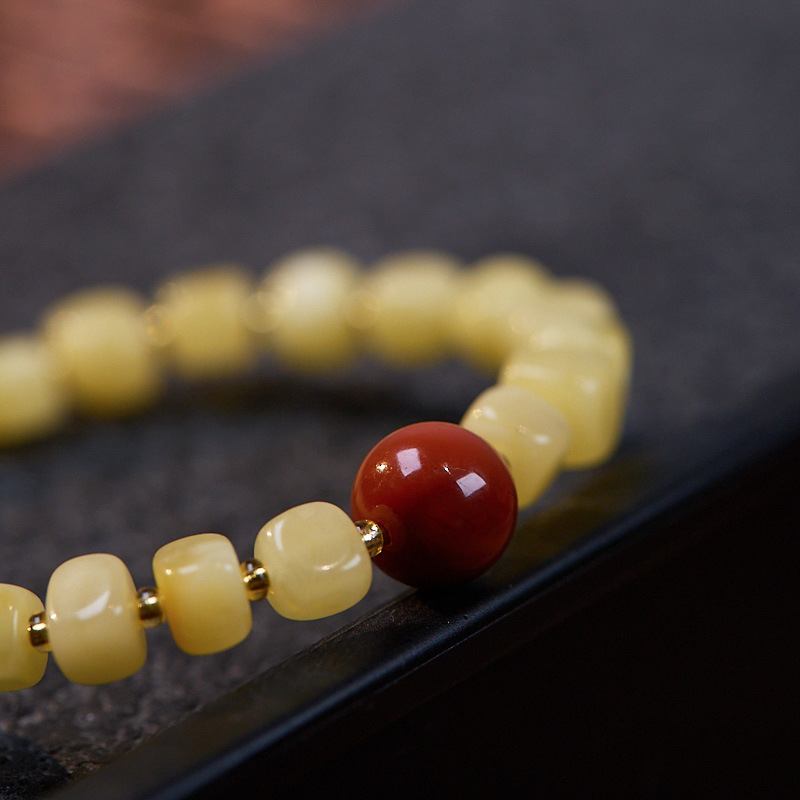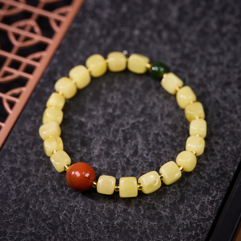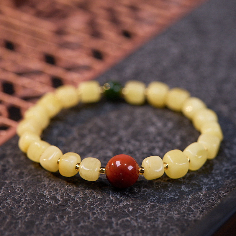 | Main Material | Natural block amber, Heton jade, Southern Red Agate, inner circle for children's wrist size 13cm