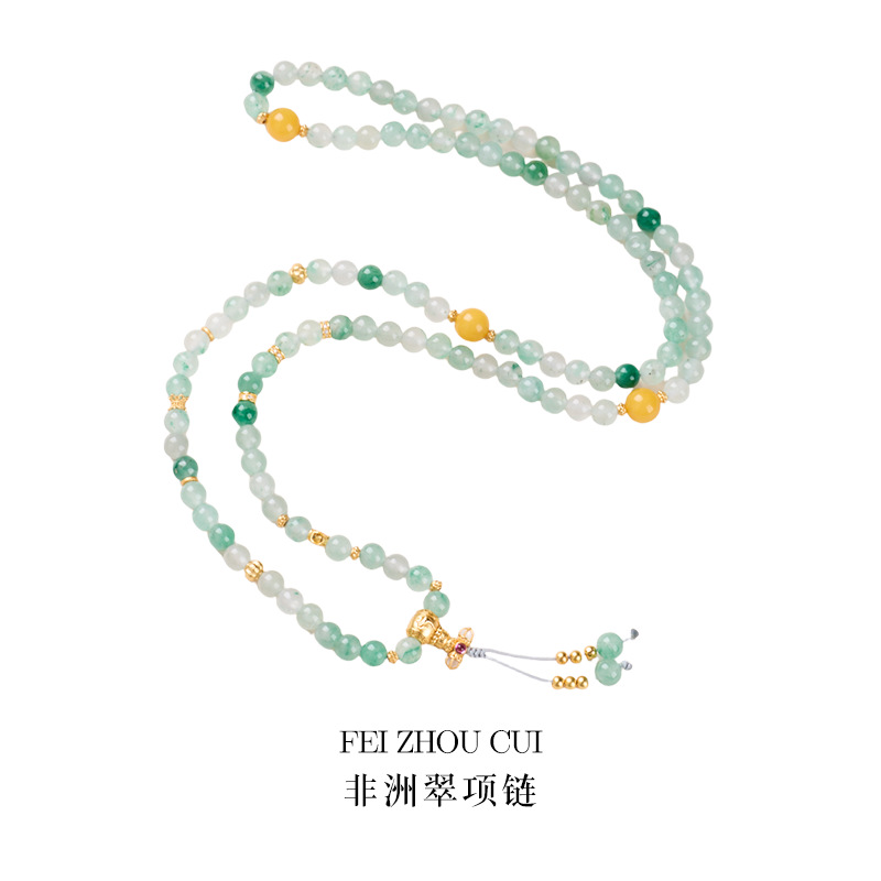 Name6MM African Emerald Apatite 108 Bead Mantra NecklaceAfrican Emerald 6MM African Emerald 108 beads Natural Bee Wax Silver Plated Gold Vajra Double-Wrist Bracelet & Necklace