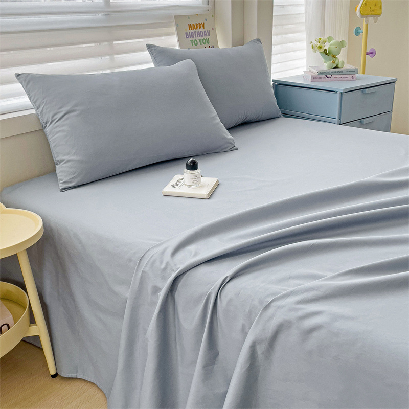 foreign trade pure cotton bed sheet double solid color simple bed sheet three-piece student dormitory single small clear bed sheet 中文版