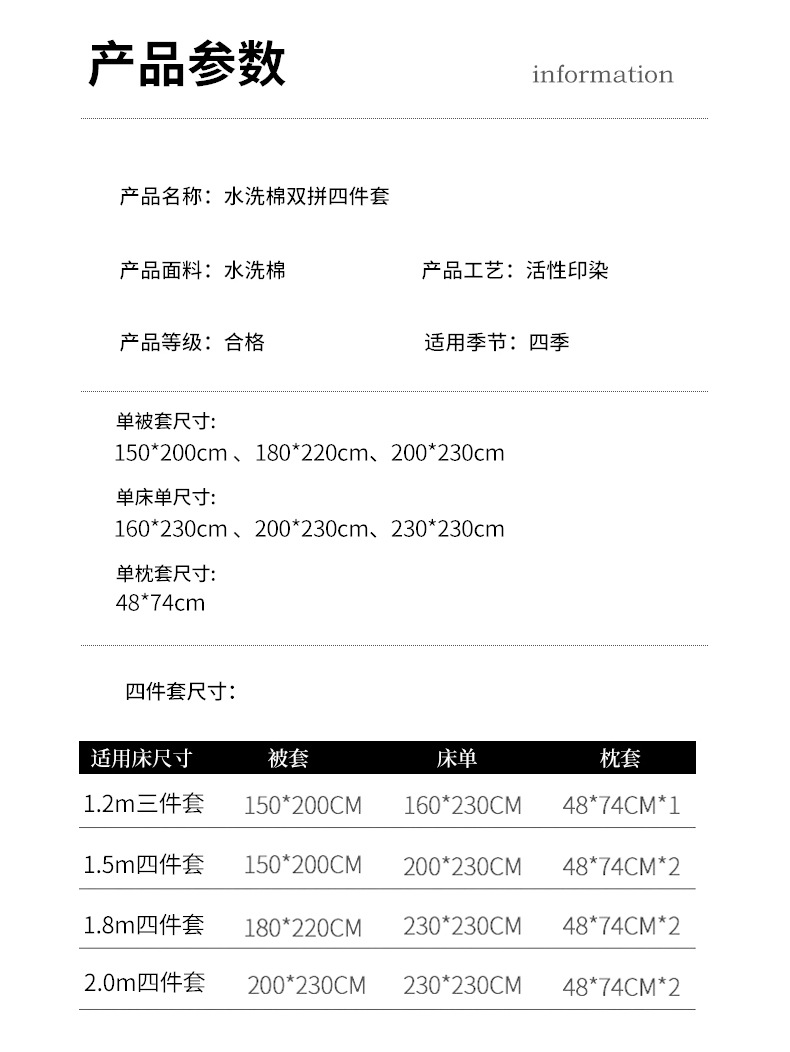 | 1.8 m four-piece set (quilt cover 180*220) | ¥56.7 | 500 set available |