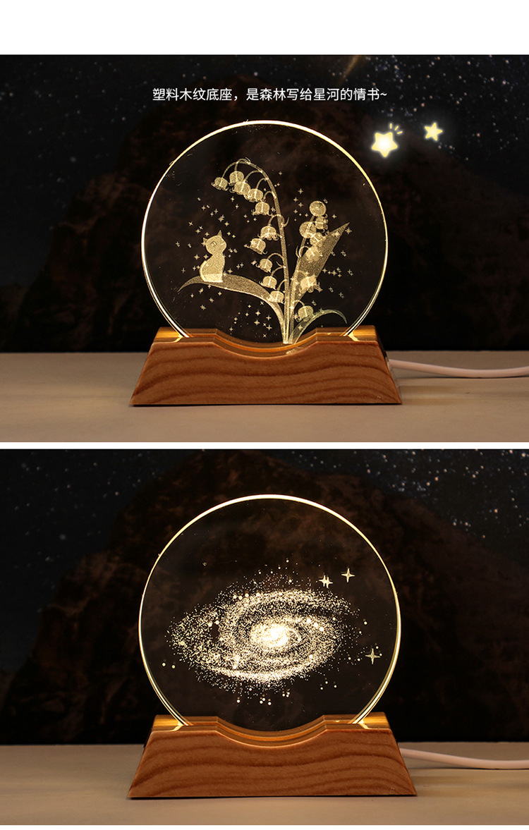 foreign trade exclusive 3d carved crystal galaxy glowing night lights gift birthday gift decoration atmosphere decoration 中文版