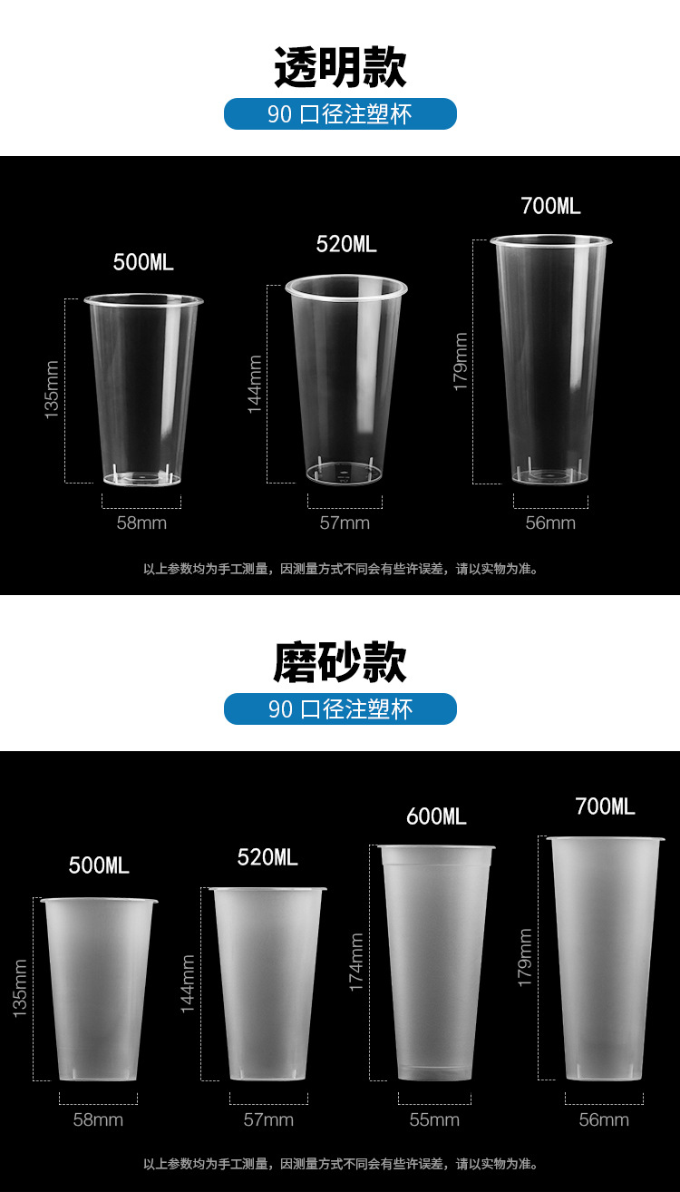 batch 90 caliber packaging cup thickened disposable cold and hot drink cup frosted clear with cover straw takeaway milky tea cup