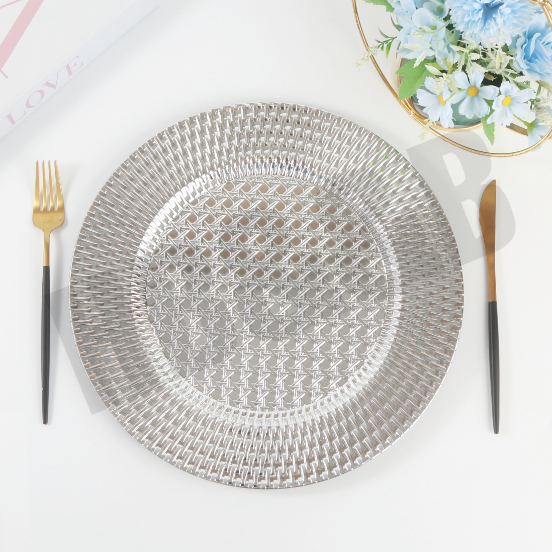new foreign trade plate hotel wedding banquet placemat plate plastic tray electroplating craft plate decorative tray dining tray 中文版