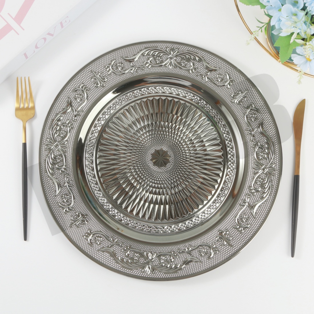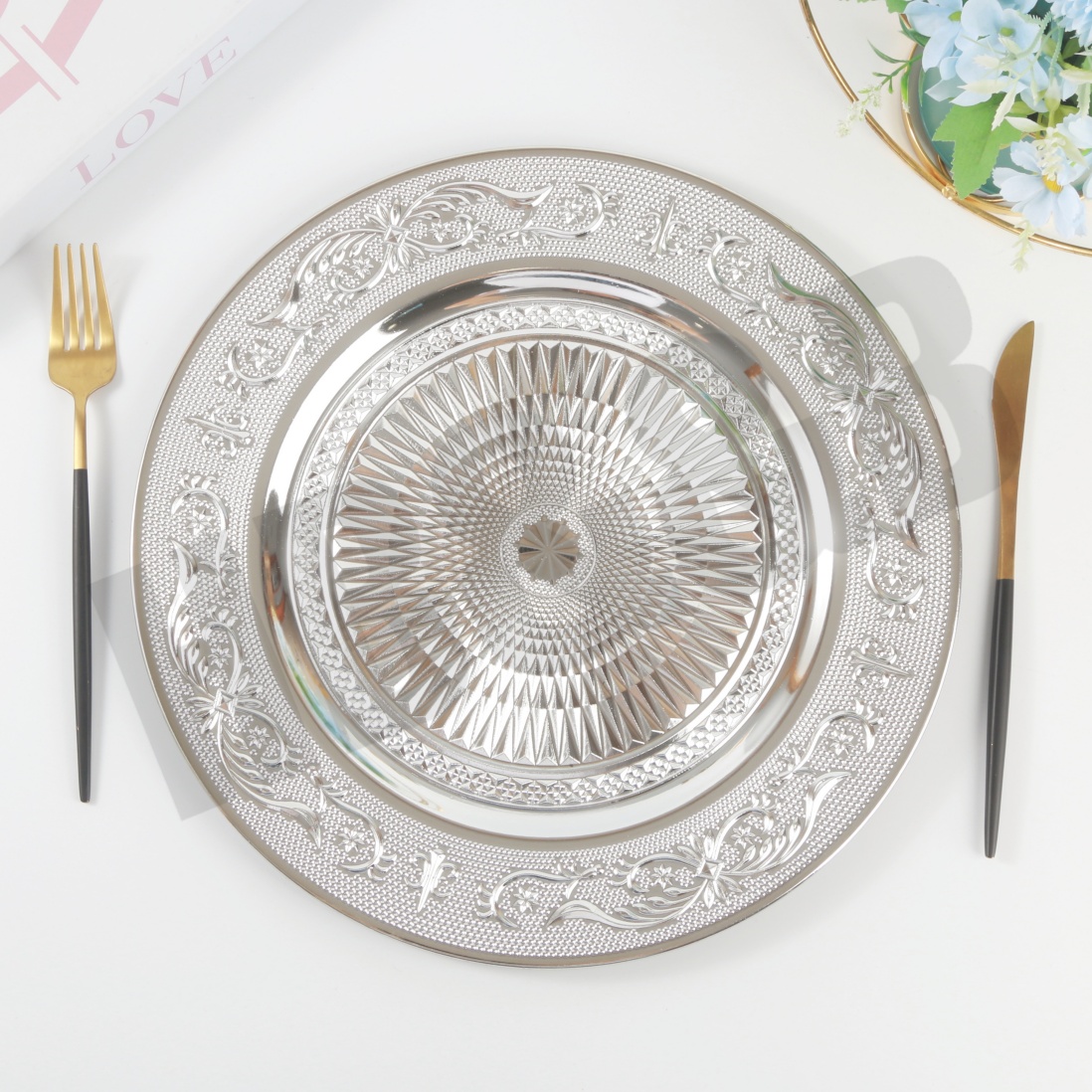 new holiday plate hotel wedding banquet placemat plate plastic tray electroplating craft plate decorative tray tray 中文版