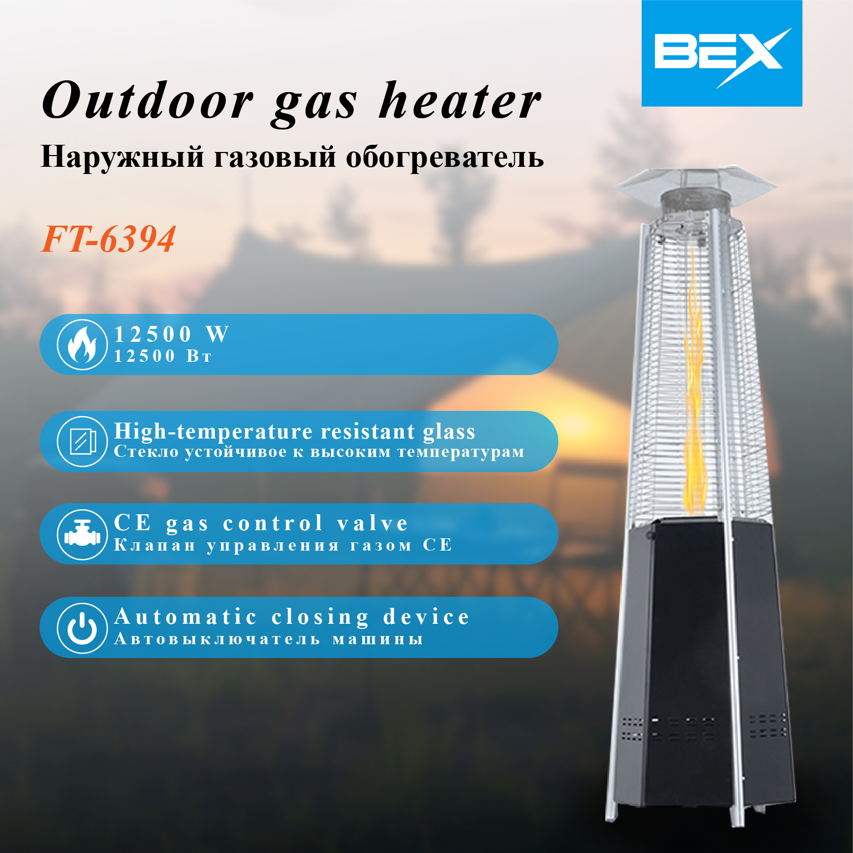 bex glass tube flame natural gas heater outdoor umbrella-shaped tower stainless steel liquefied gas heater heater 中文版