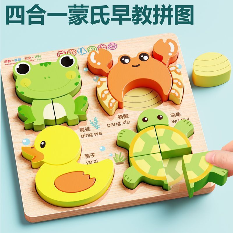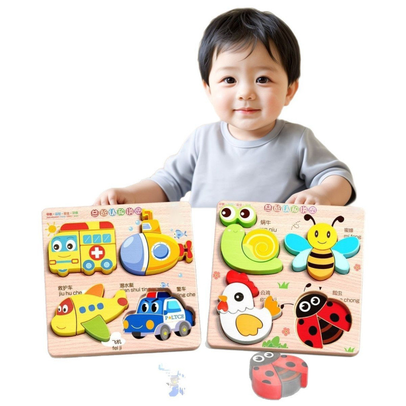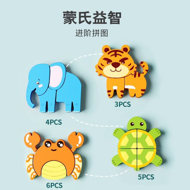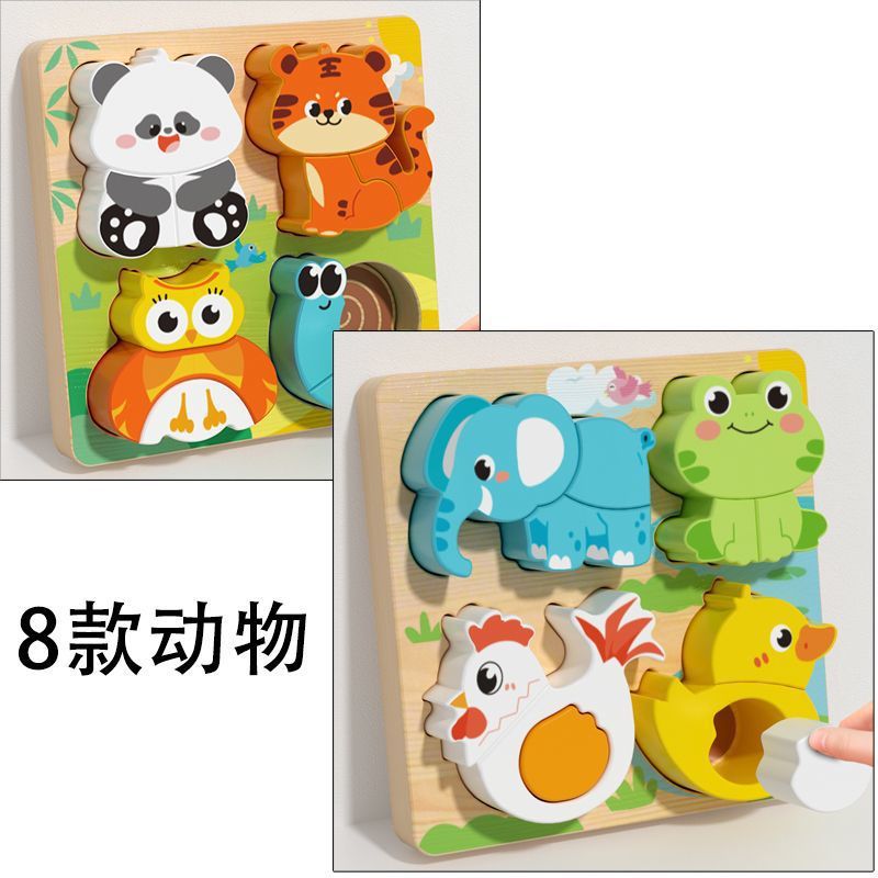 children education puzzle 3d 3d toy montessori wooden baby animal building blocks literacy 1 and a half years old 2 to 3 years old 中文版