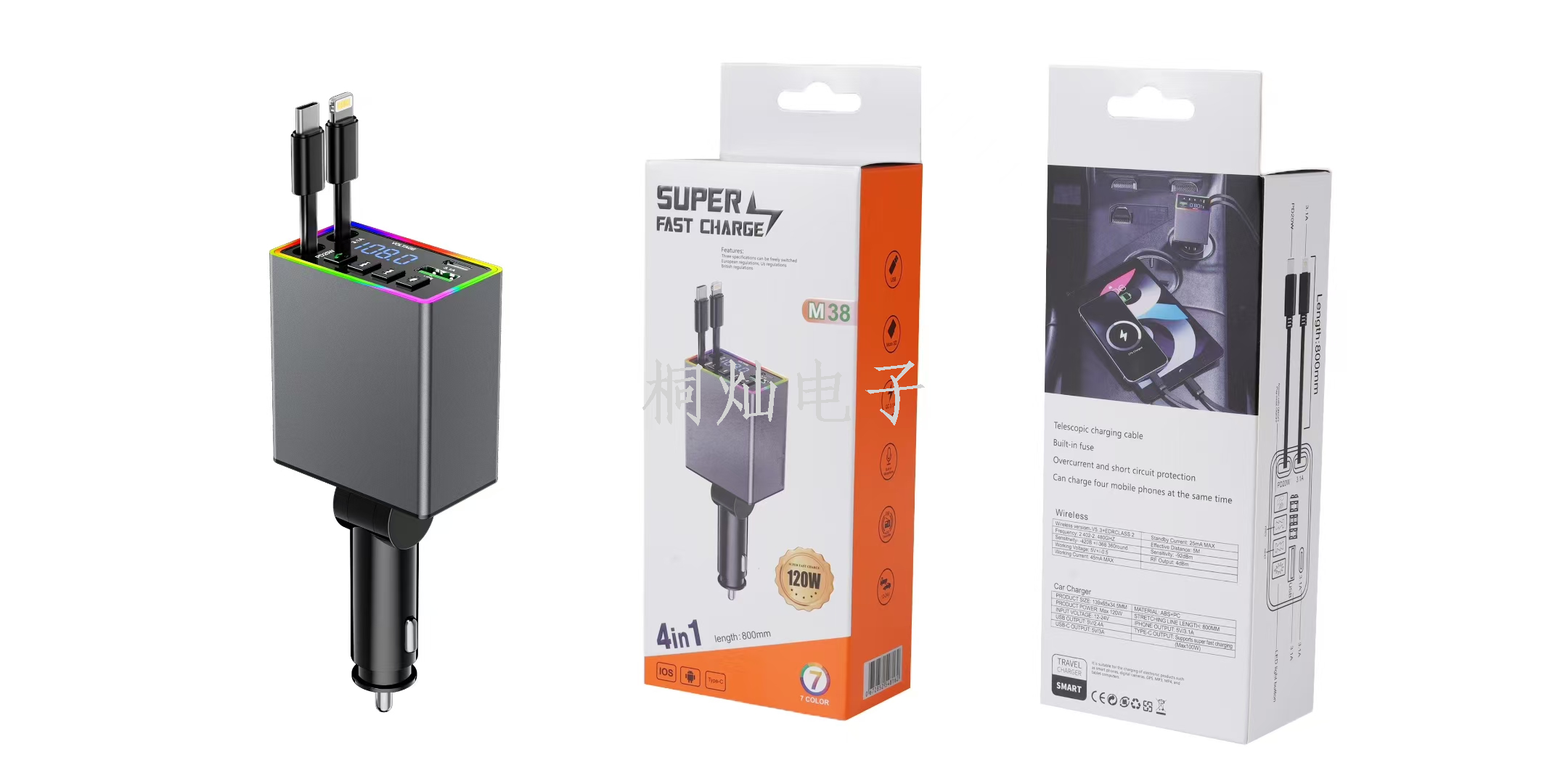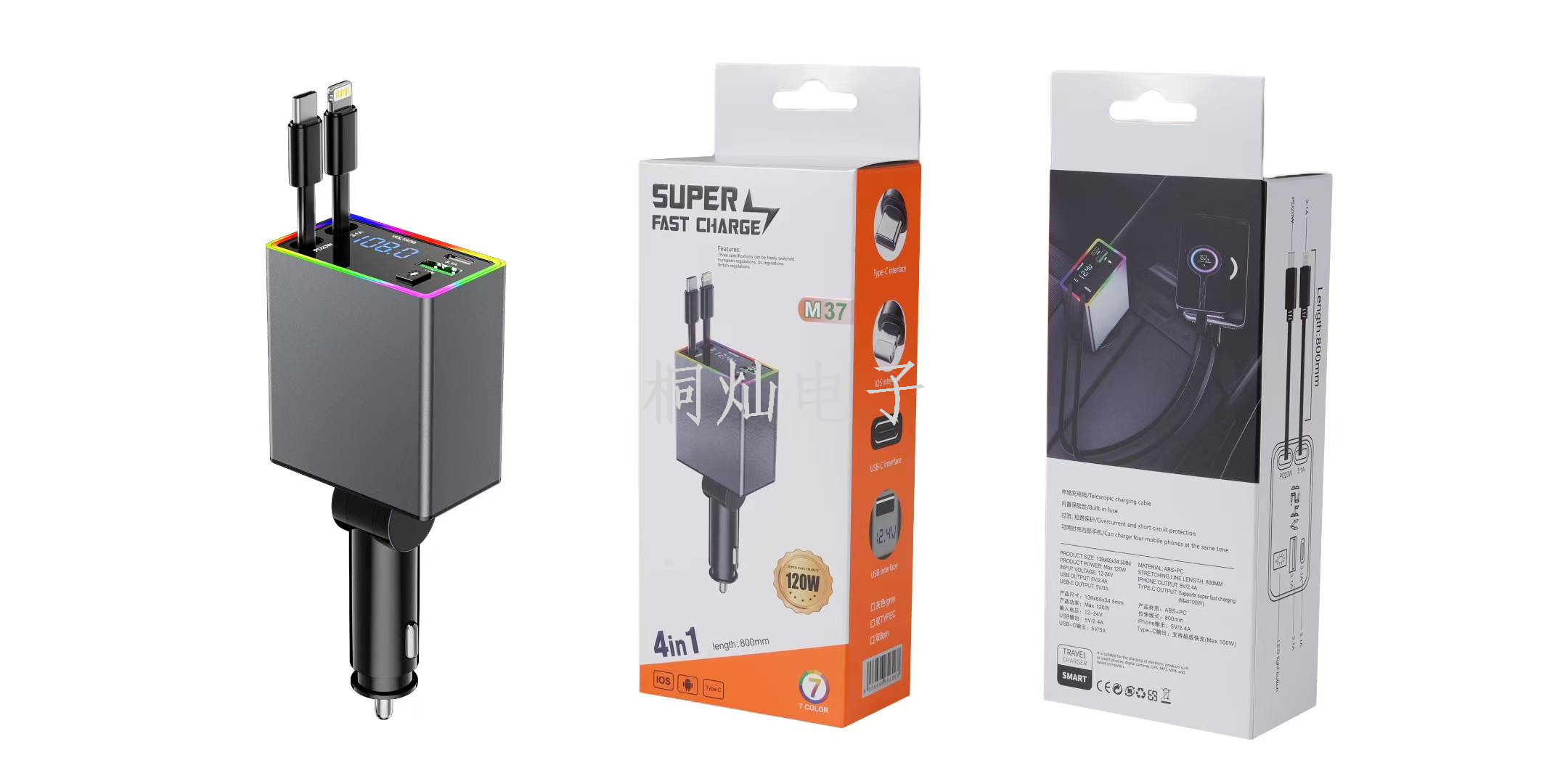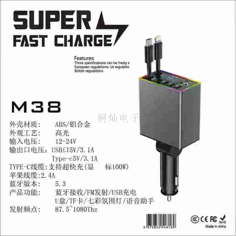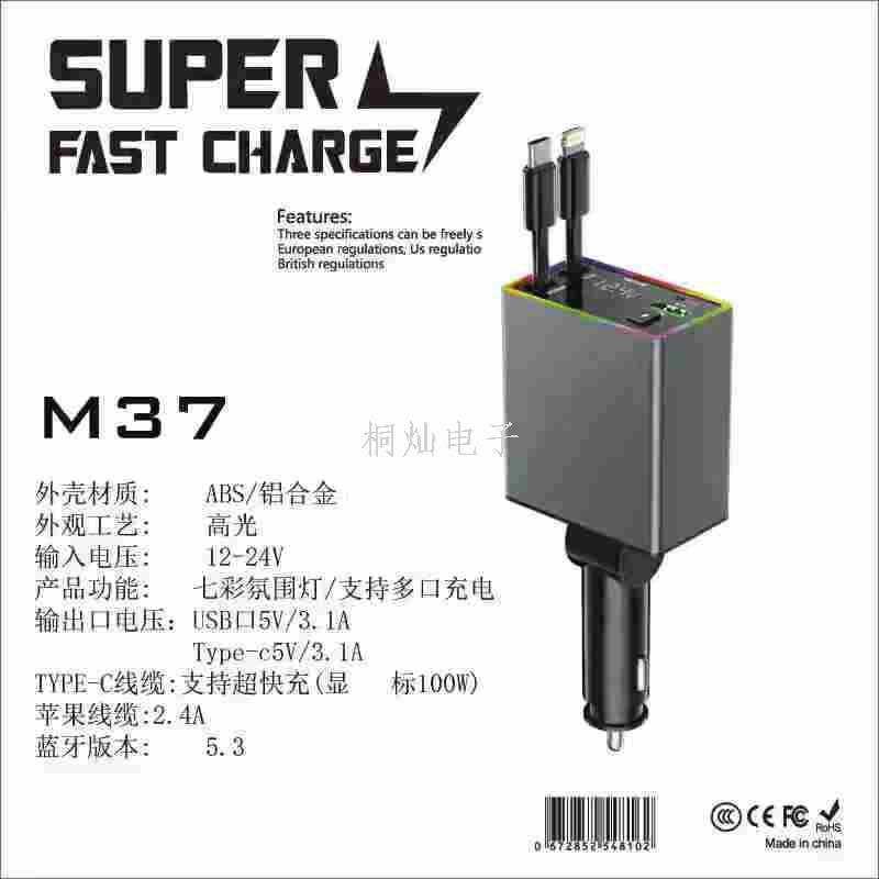 6A Car Charger 120W Super Fast Charge Multi-Function Cigarette Lighter Conversion Plug USB Adapter PD Four-in-One 中文版