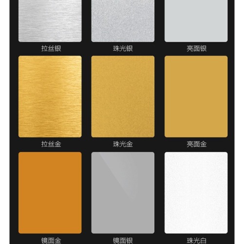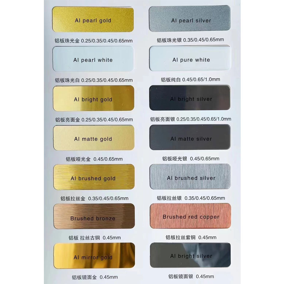 The thickness of the heat sublimation aluminum plate is available in 0.25mm/0.35mm/0.45mm/0.65mm/1.0mm, and the colors include matte board, brushed board, bright panel, matte board, mirror panel, solid color board, etc.