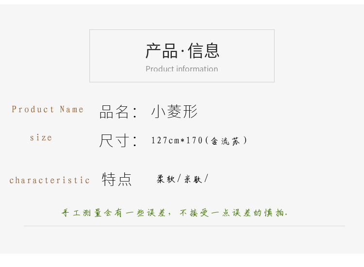 | 127cm * 170cm (including tassels) | CN¥ 55.0 | 996 piece available |