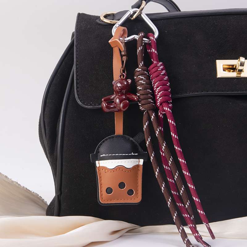 leather milky tea cup bag ornaments acrylic bear phone case clip miu pendant diy woven