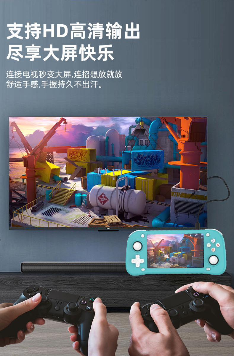 支持HDMI输出连接电视,支持外接手柄,支持外接IWFI对打
