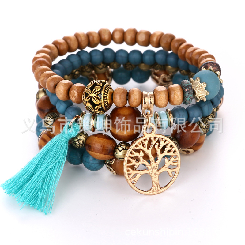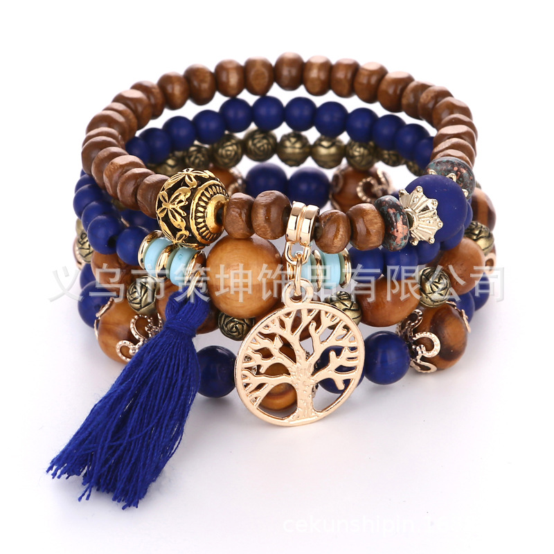 wooden bead ink blue