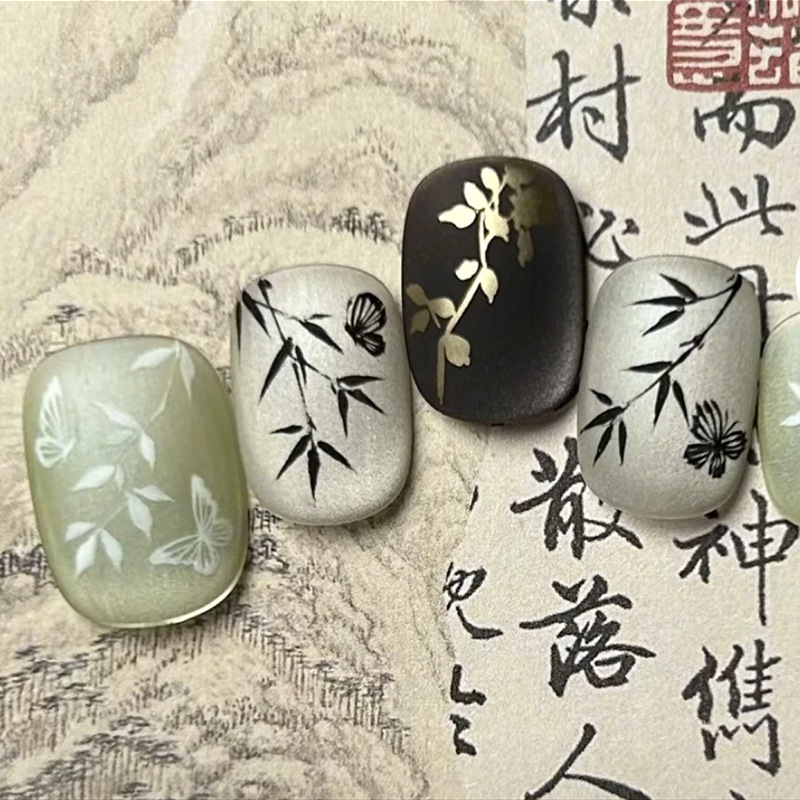 popular wear armor ice transparent dream blue french eye dynamic handmade fake nails wear finished nail beauty nail tip