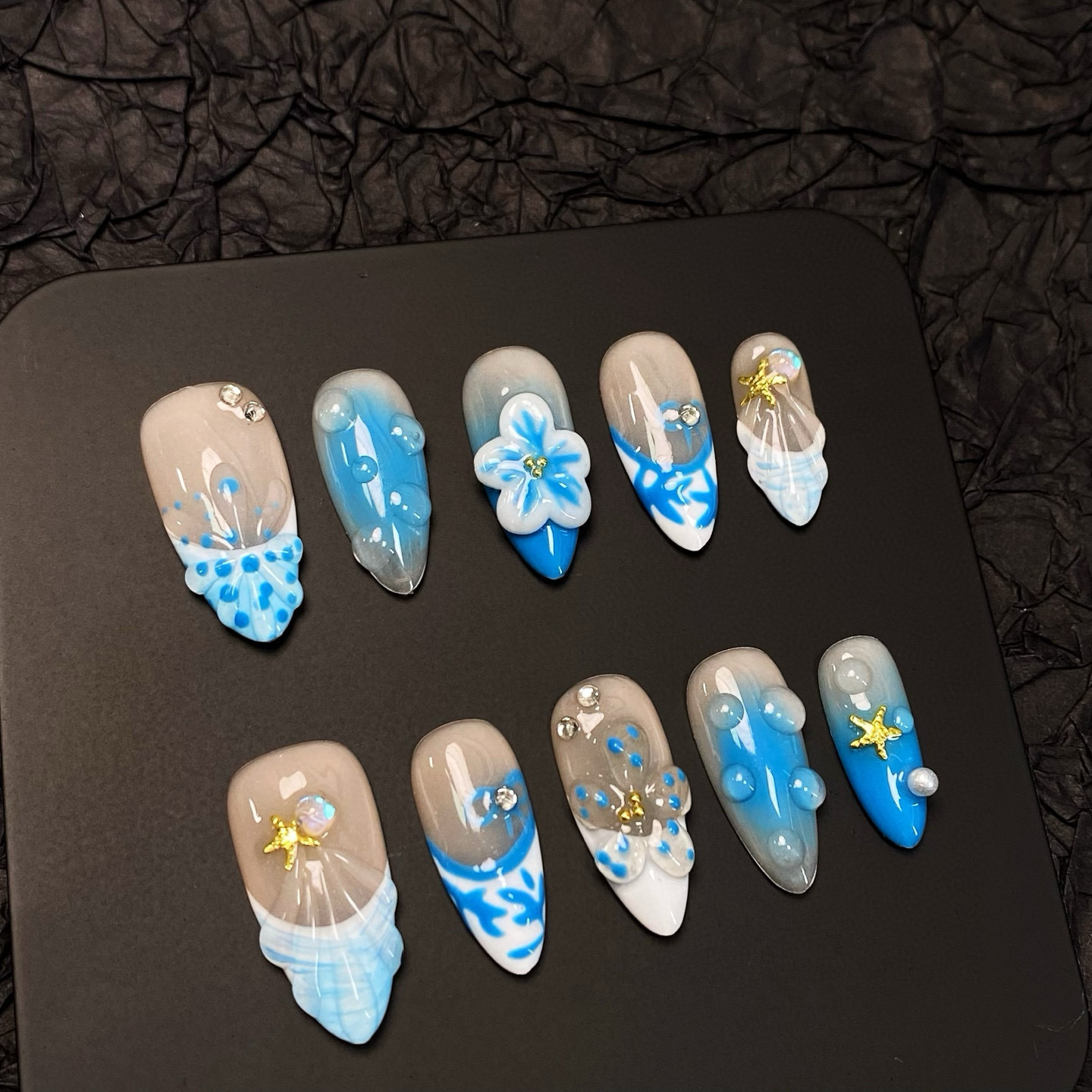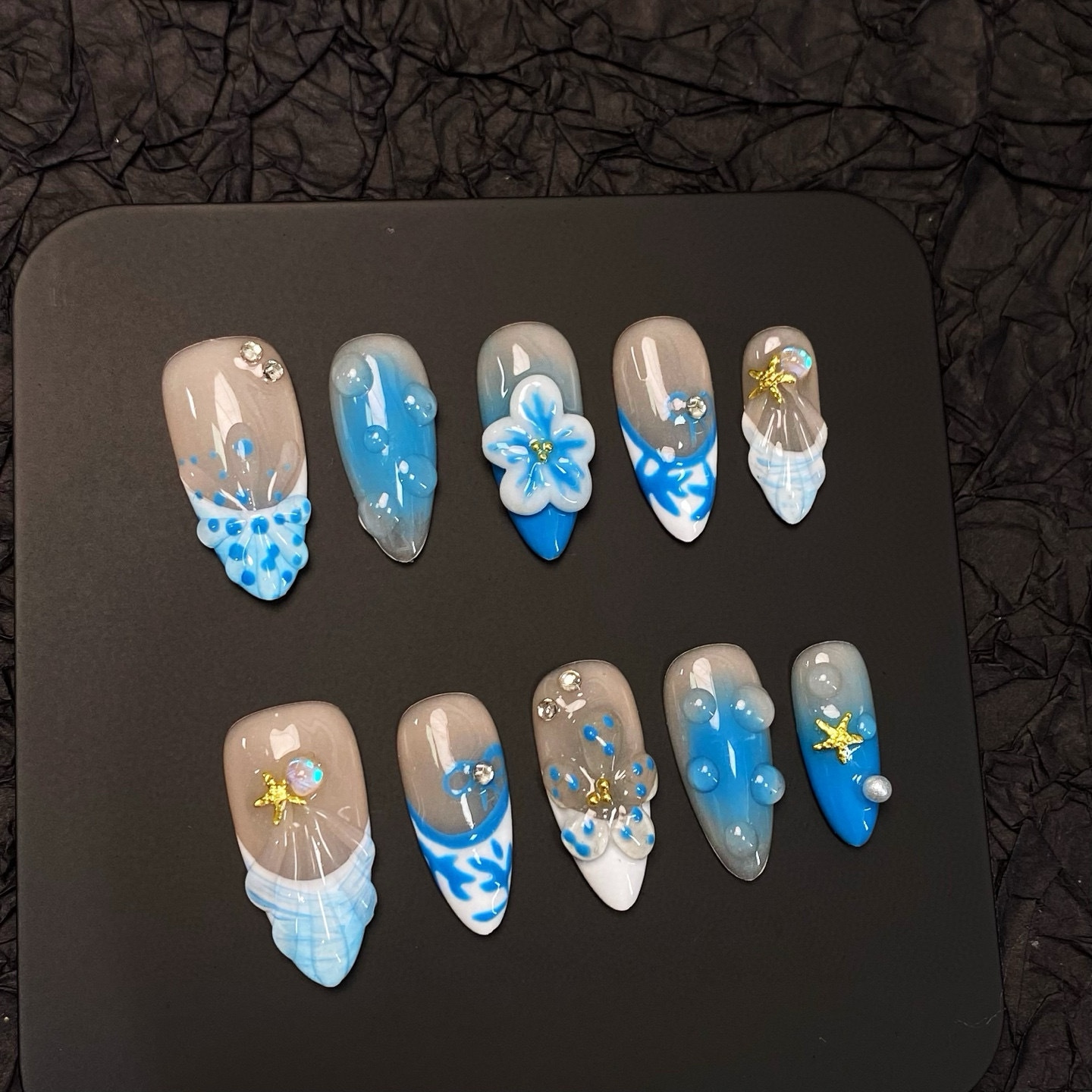 dyed nail european and american hot girl cross-border almond nail three-dimensional carved blush nail ins sweet pure want to wear nail pure handmade 中文版