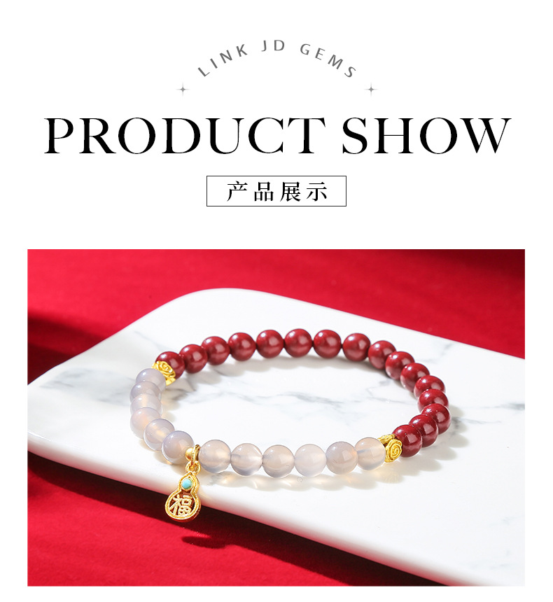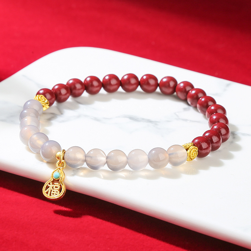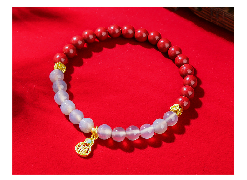 purple sand gray agate lucky gourd bracelet