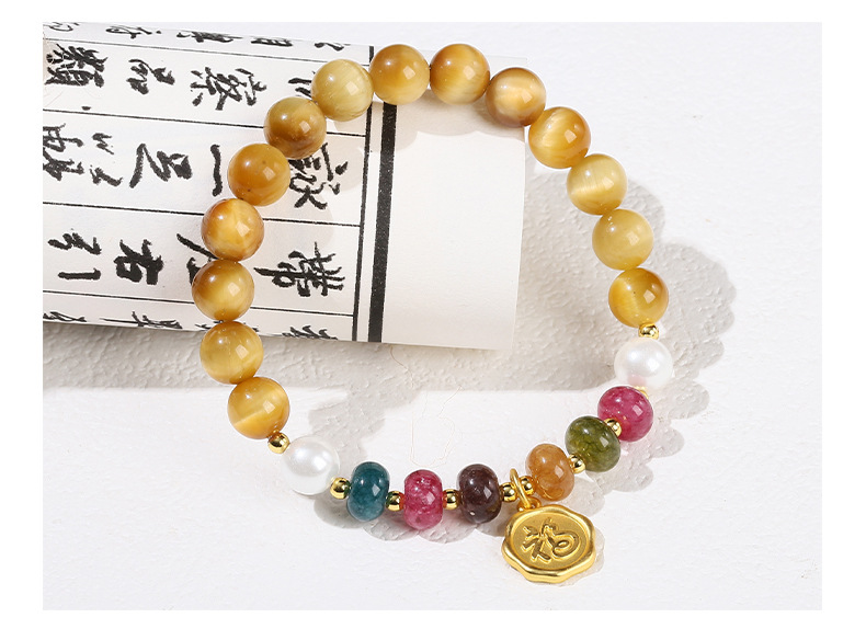 jingzhou jewelry 5a golden tigerite tourmaline color chalcedony bracelet ethnic style blessing card accessories girls wild bracelet