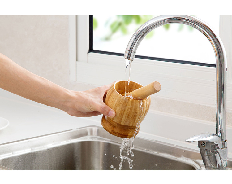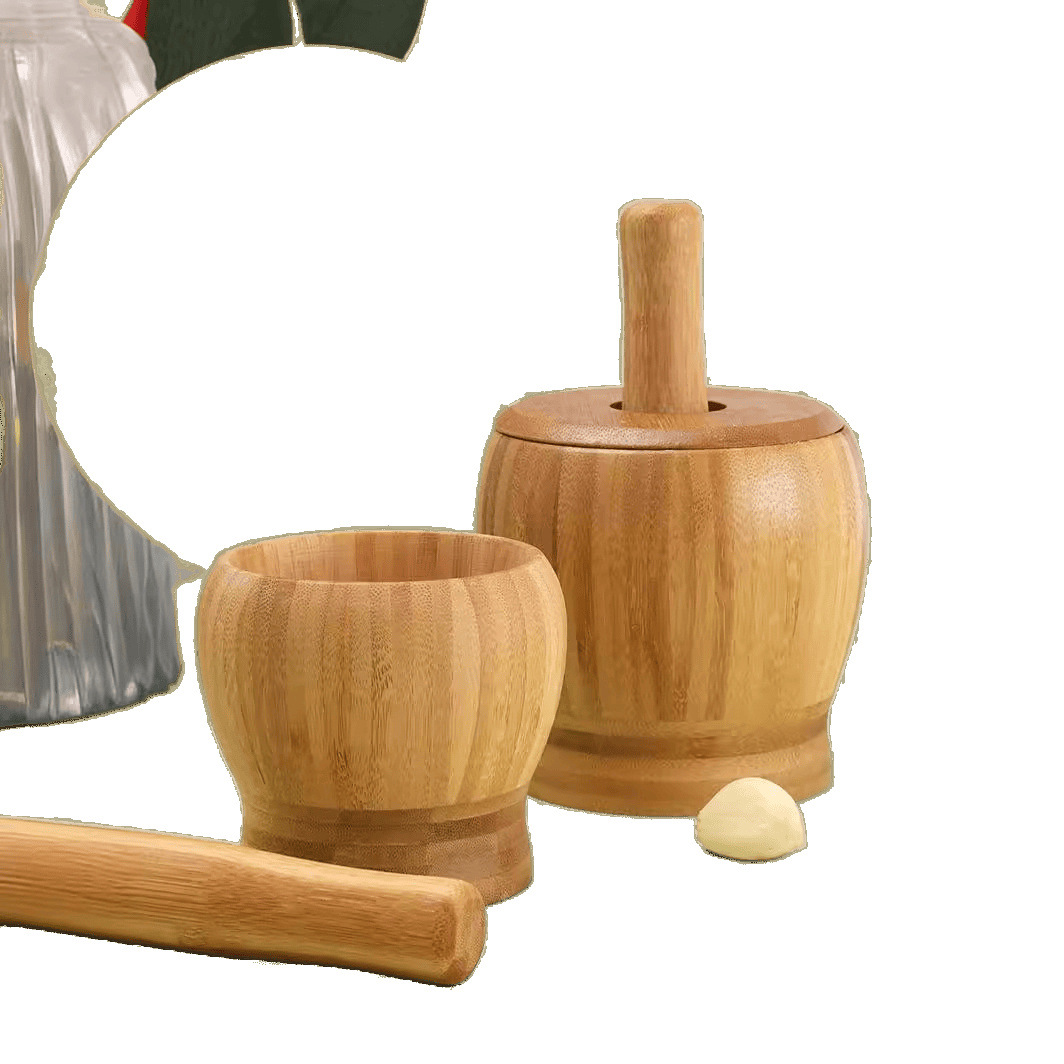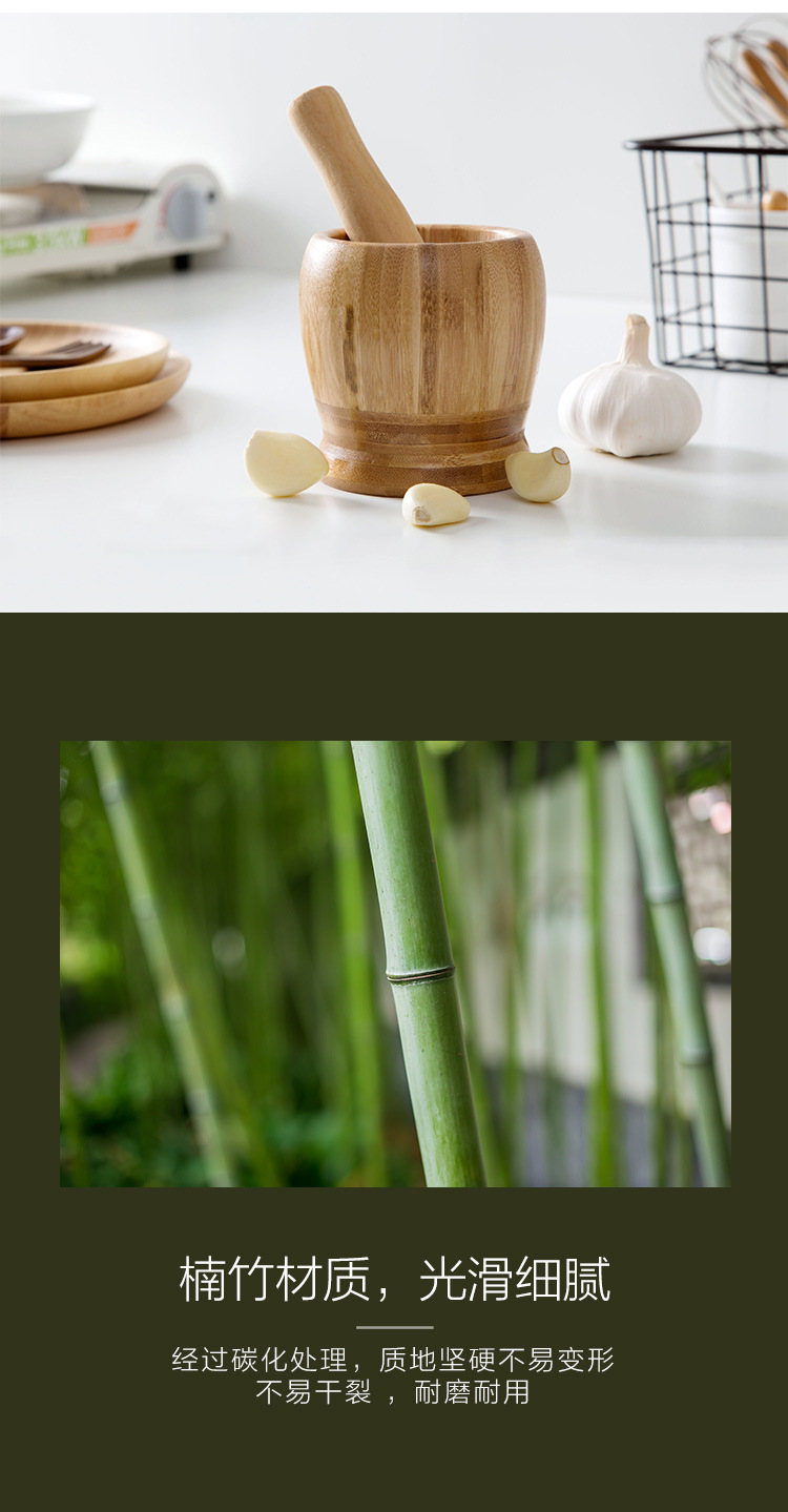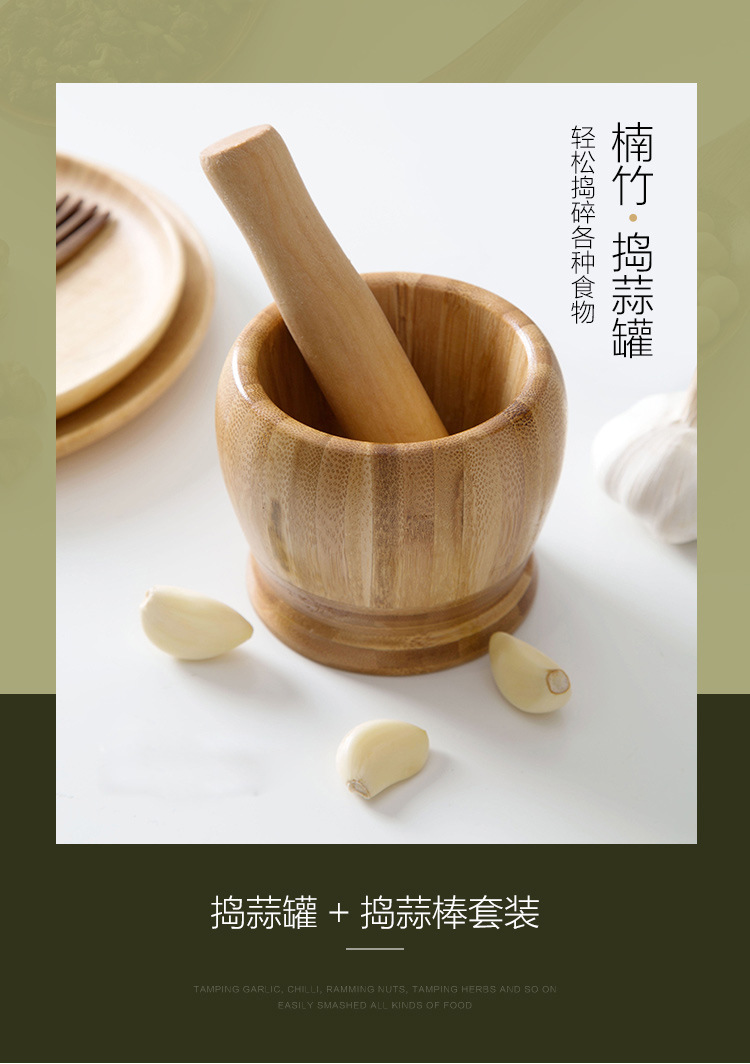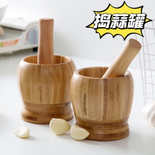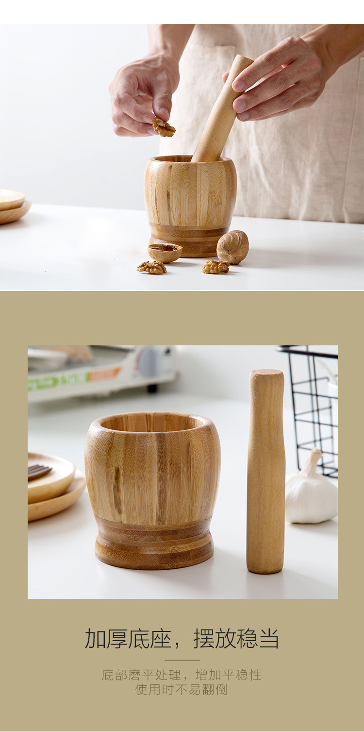 garlic mortar gallipot old-fashioned manual garlic press bamboo pestle household mashing jar mortar grinding nest mashing jar 中文版