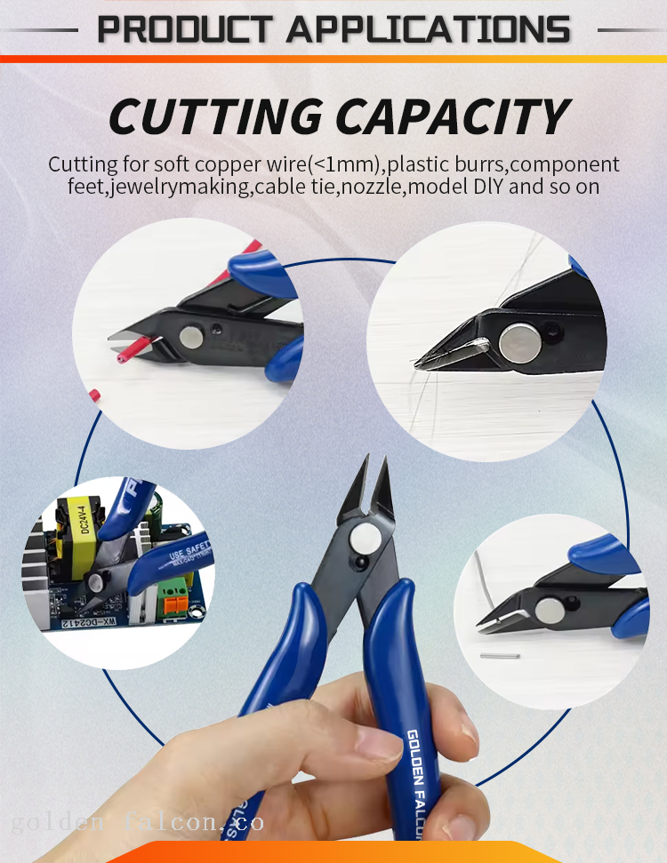 Cut wire, electronic feet, trimming plastic products, cut a small metal wire, the repair of electronics industry, jewelry processing, model making, fishing and so on