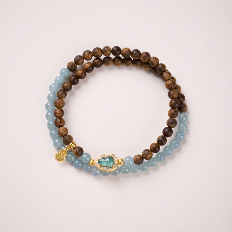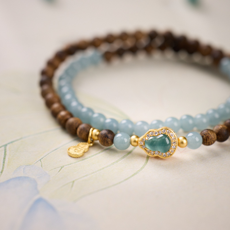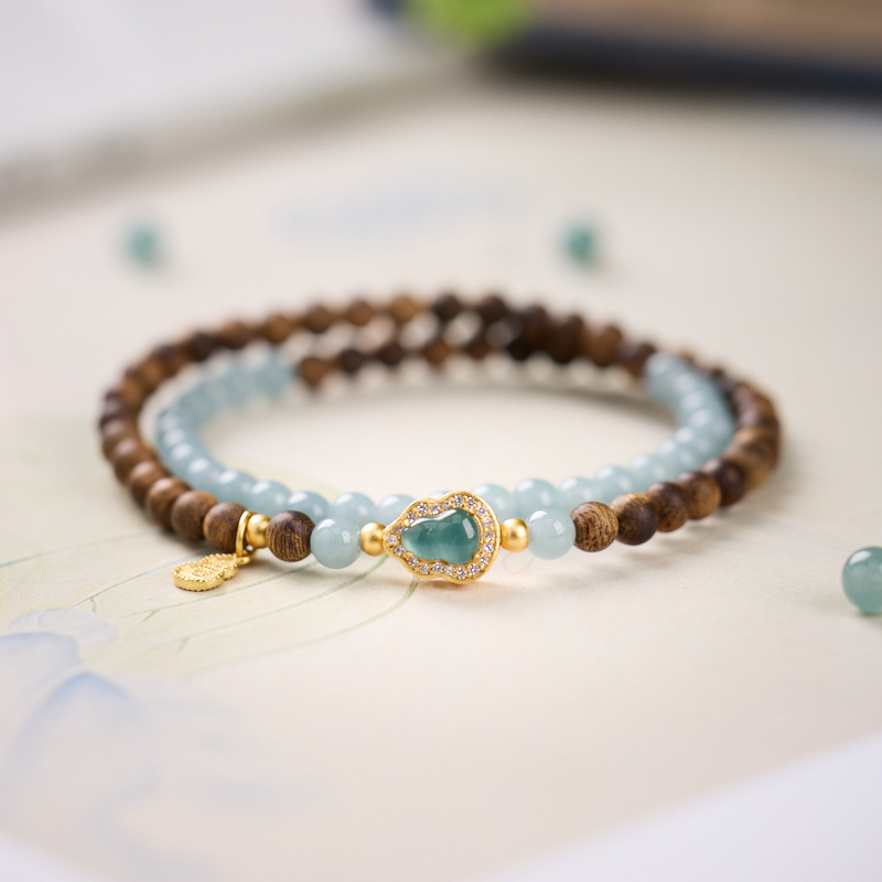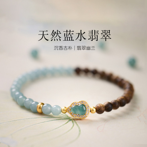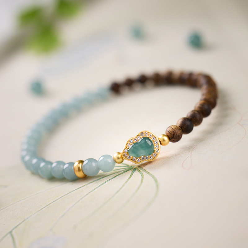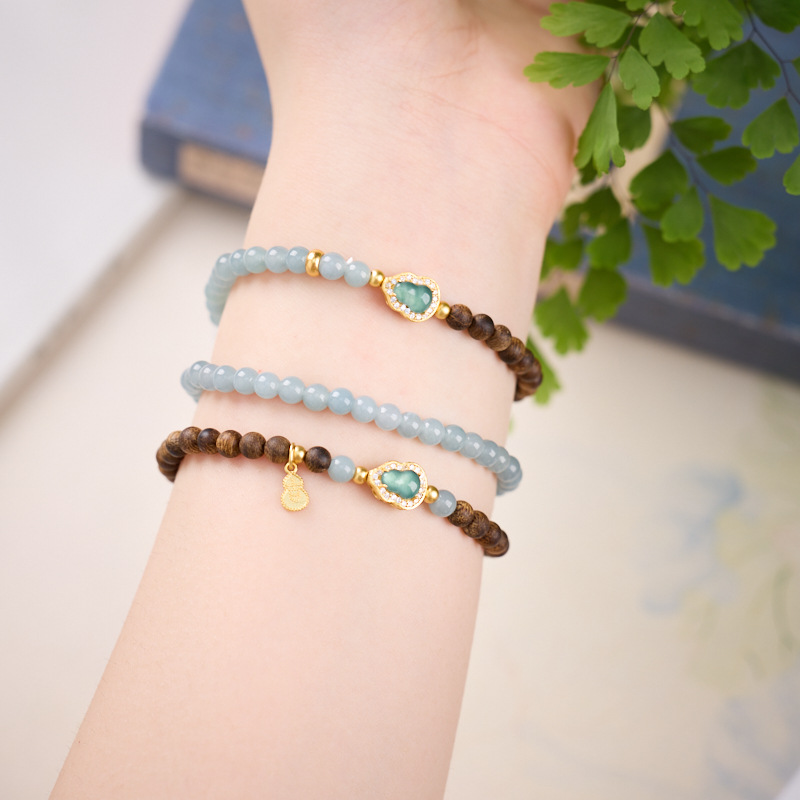 | Name | Wild Agarwood 4mm - Blue Water Jade Silver-plated Gold-coated Gourd Bracelet Design