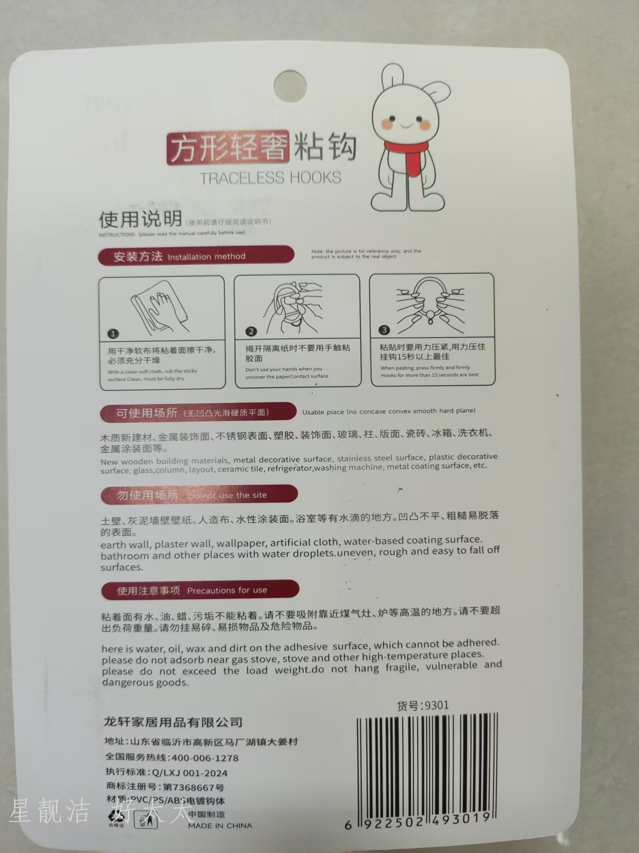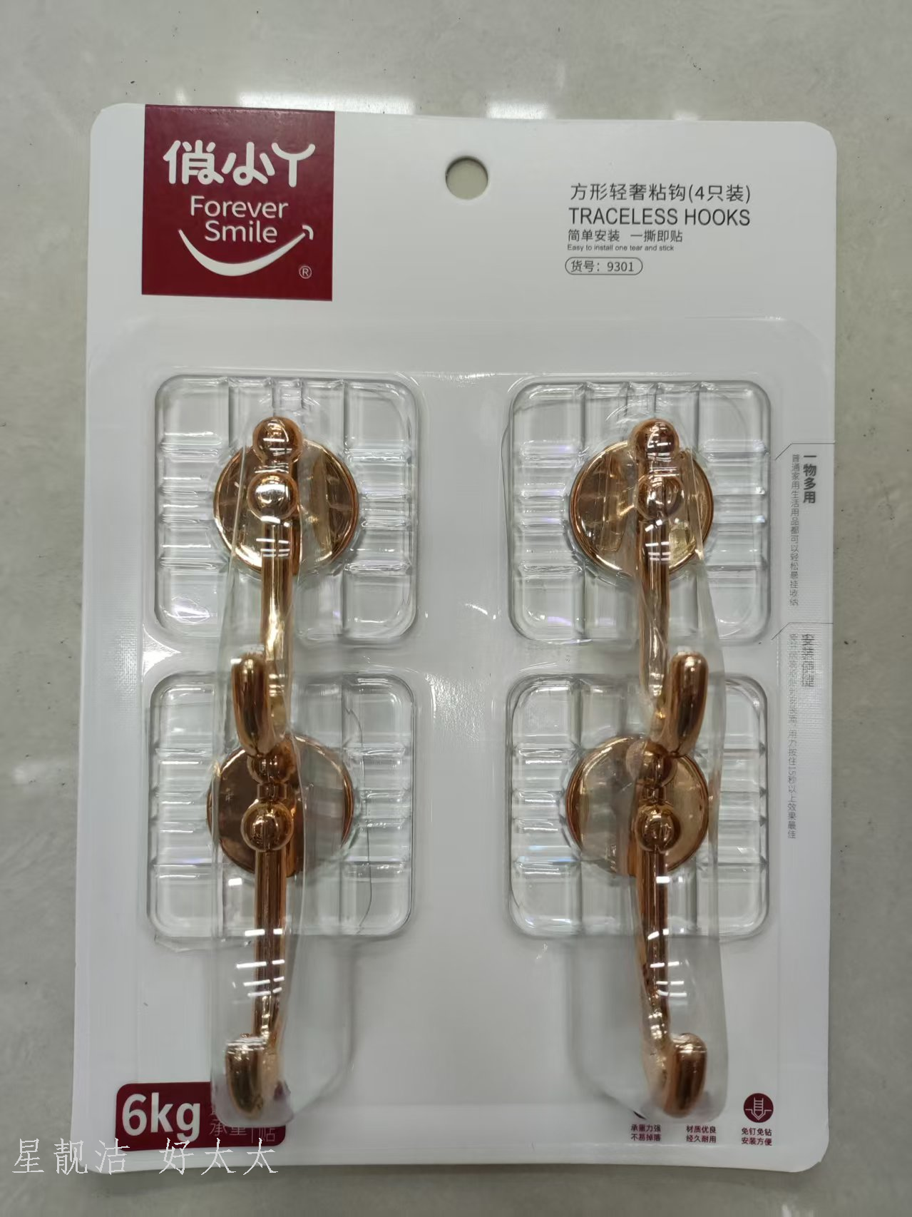 kitchen and bedroom bathroom strong sticky hook stainless steel punch-free hook 4 pieces 中文版