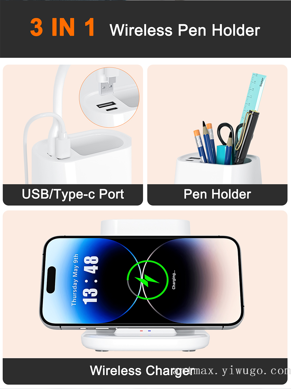 Pen Holder Phone Holder Wireless Charger 中文版
