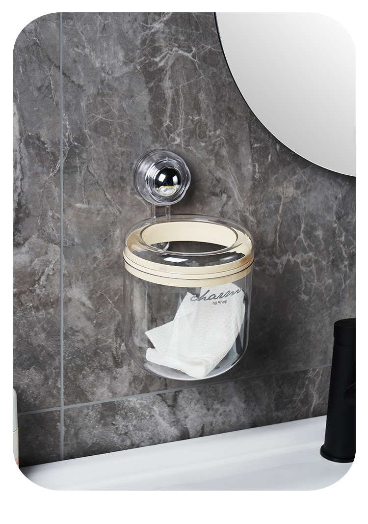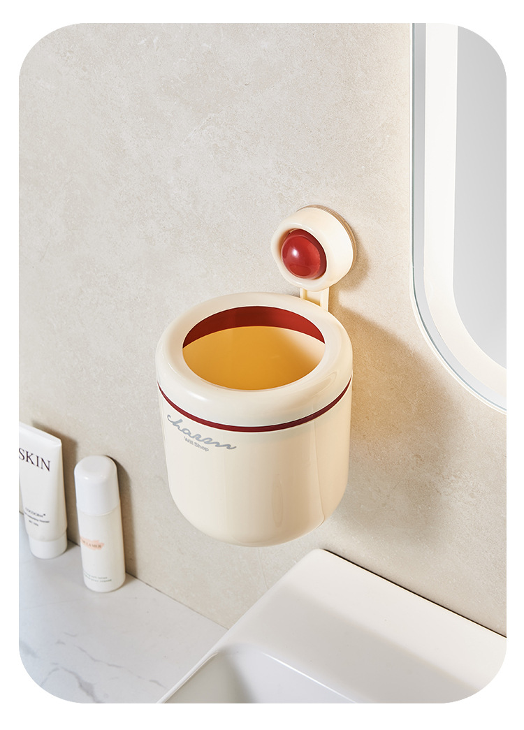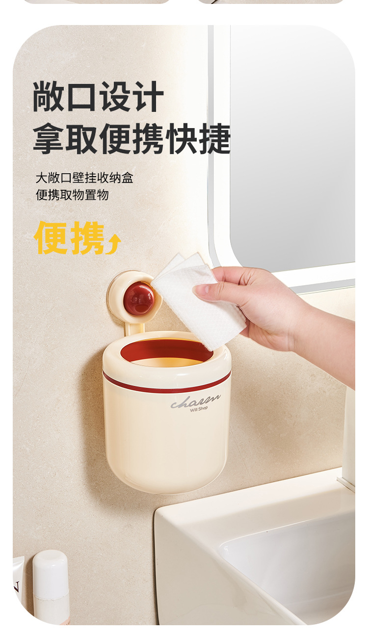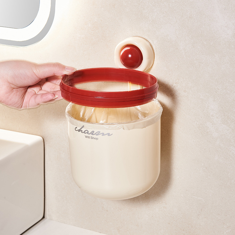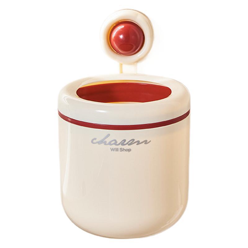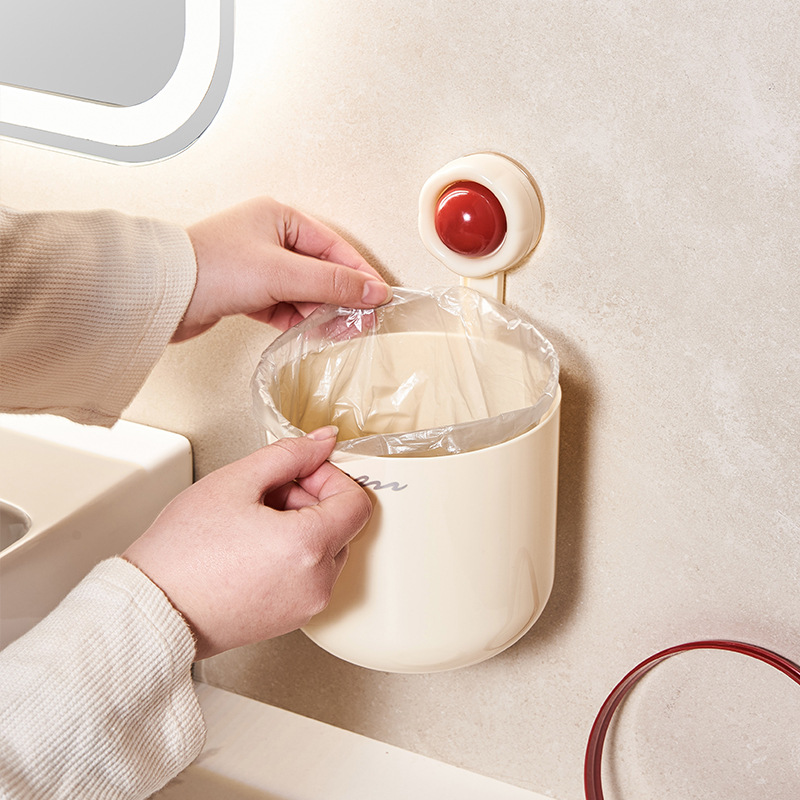 cream style round wall-mounted trash can pressure ring suction wall bathroom small size wastebasket vacuum suction garbage storage small box