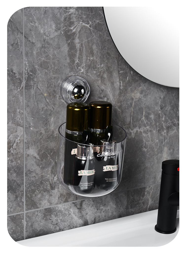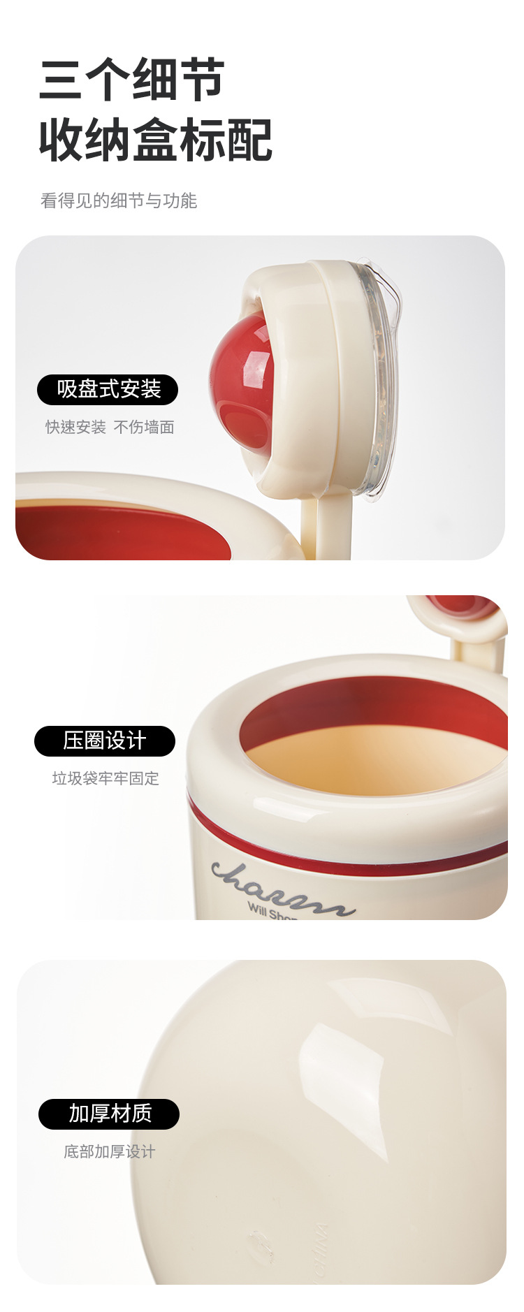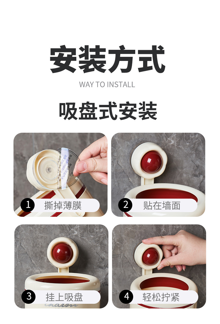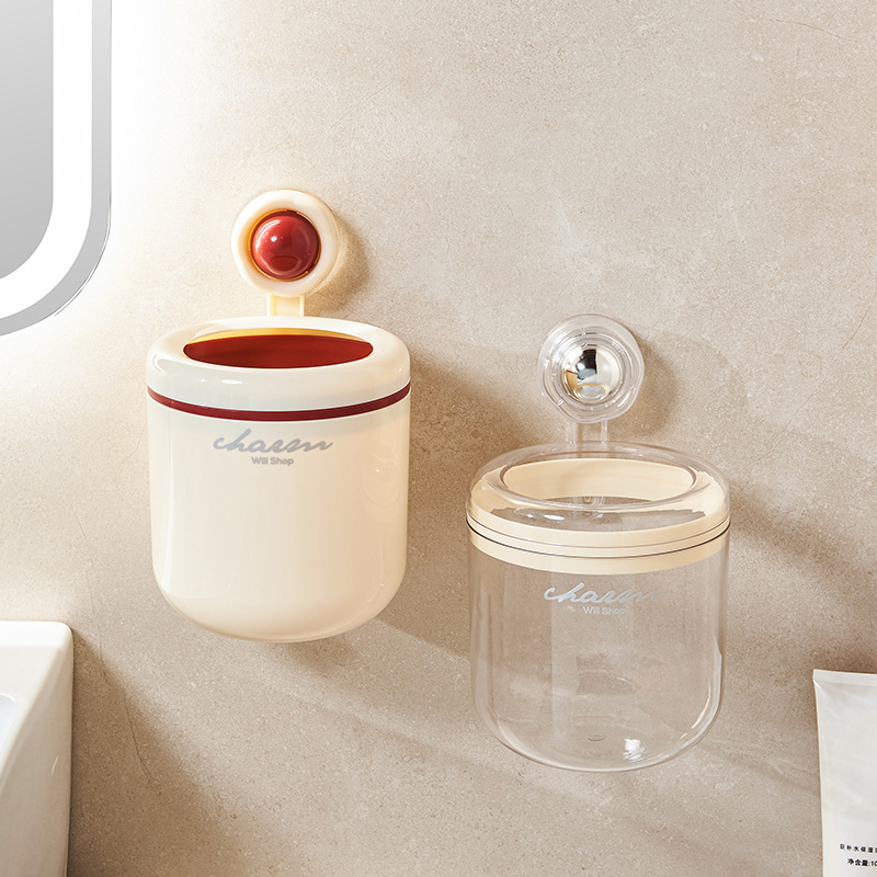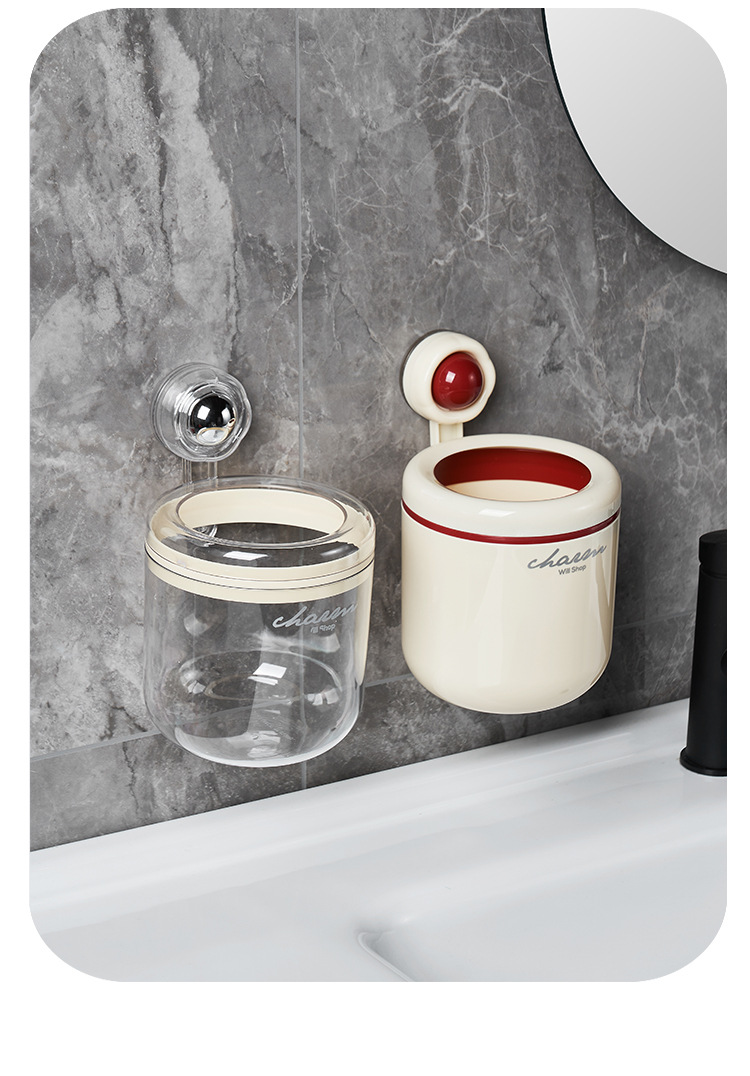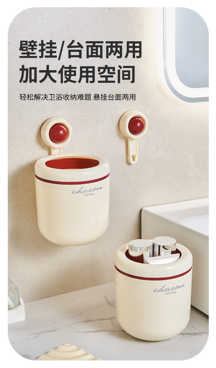 cream style round wall-mounted trash can pressure ring suction wall bathroom small size wastebasket vacuum suction garbage storage small box