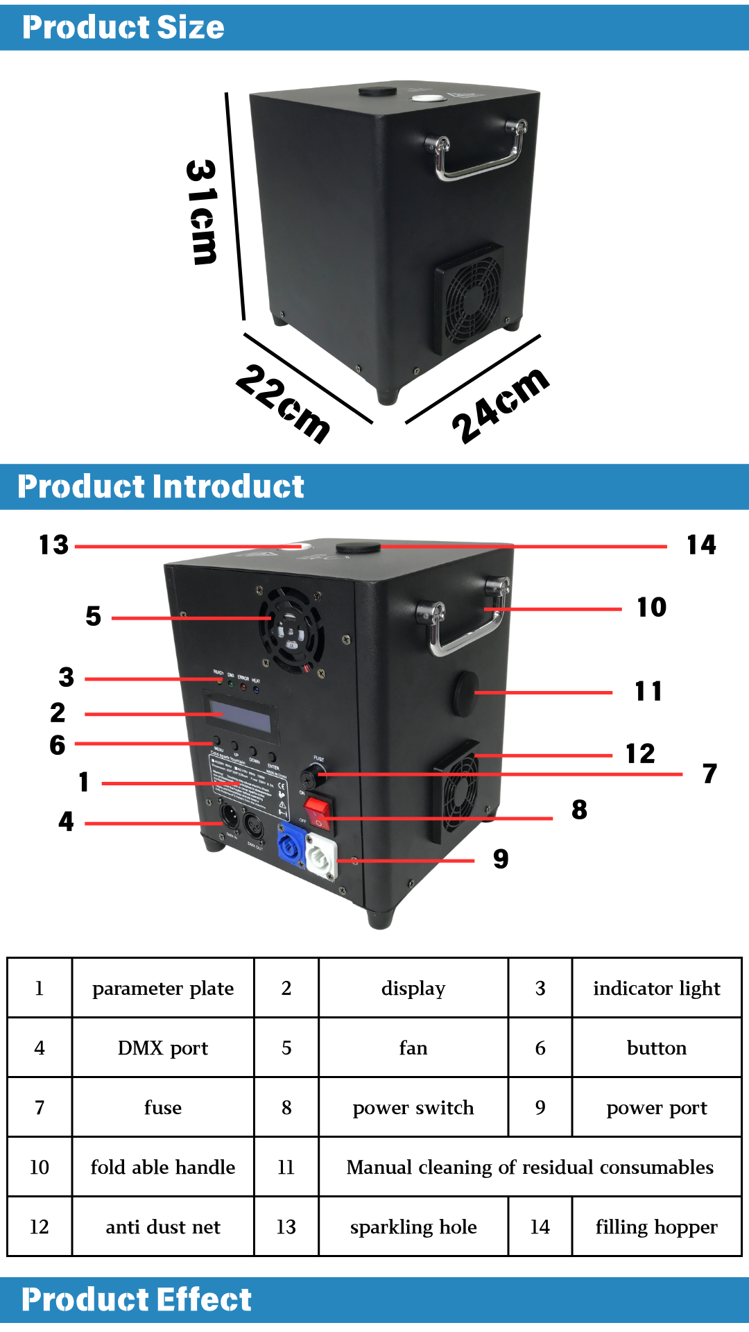 Cross-Border Best-Selling 650W Stage Electronic Spray Flower Machine, Wedding Performance, Bar And Concert Spray Flower Stage Special Effects Equipment, Electronic Starlight Machine, Cold Fireworks Machine Manufacturer Wholesale