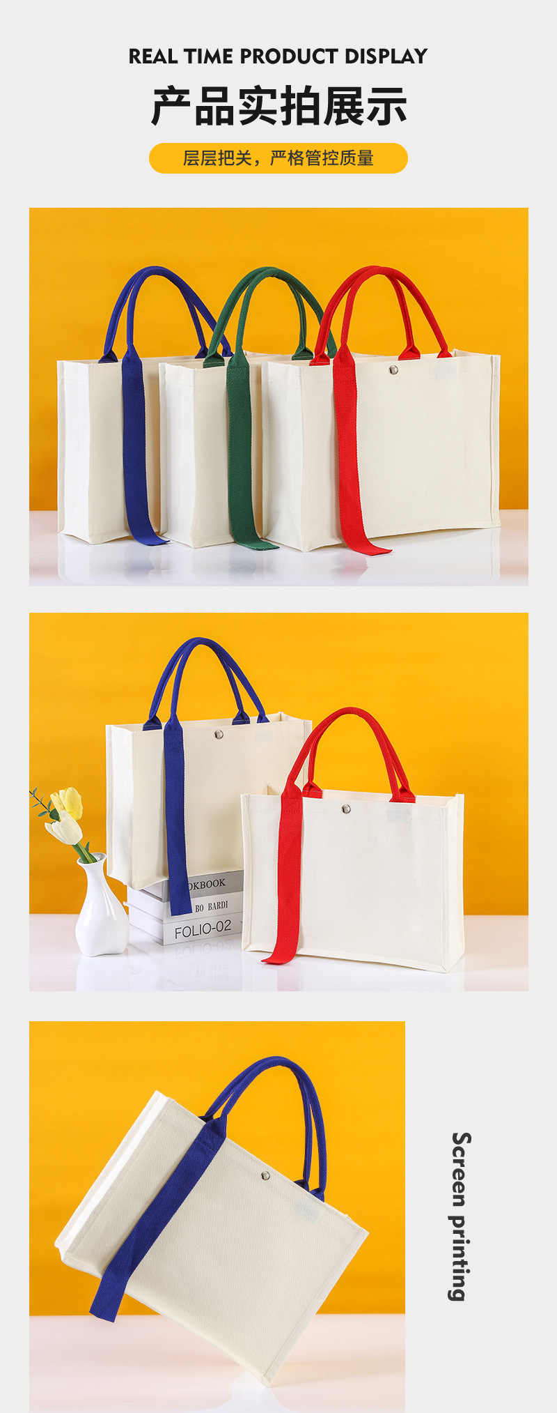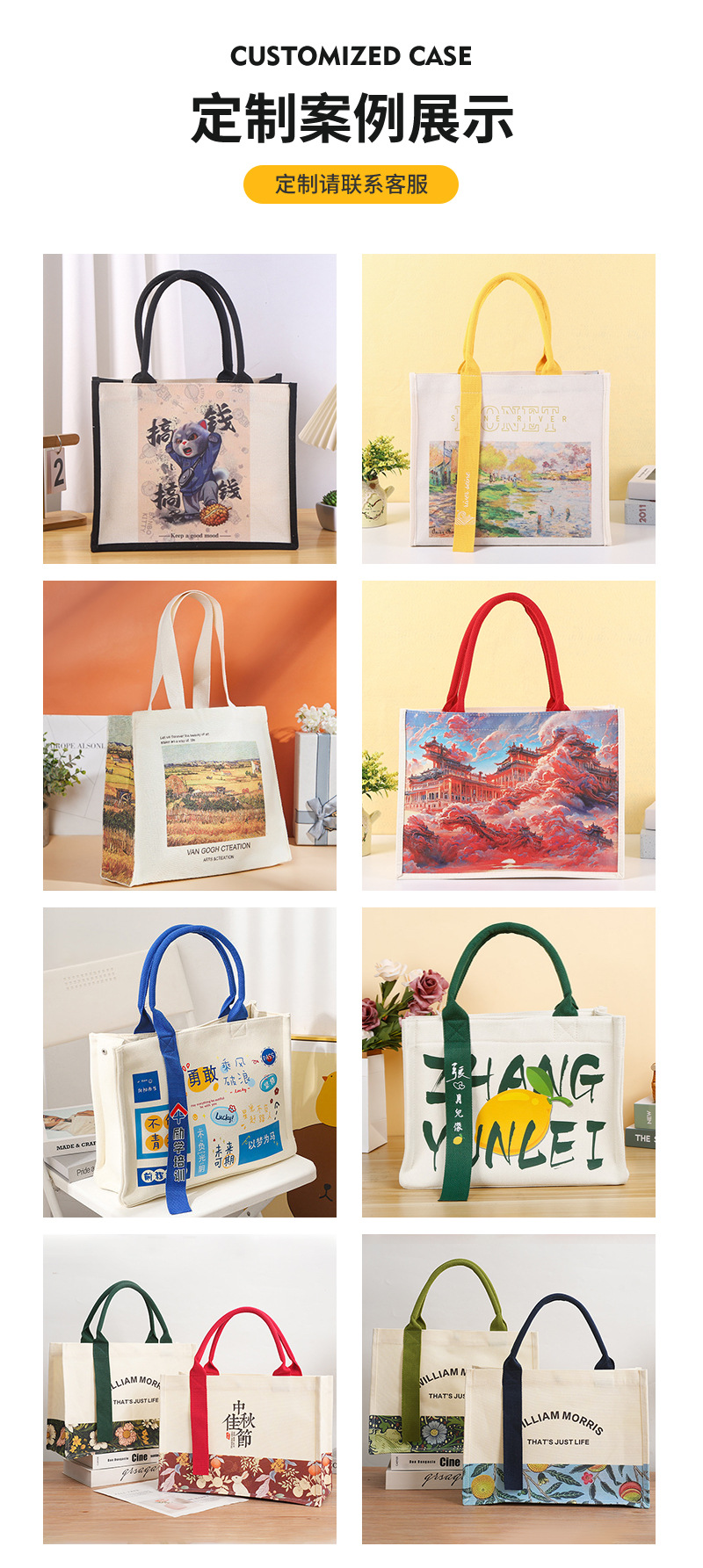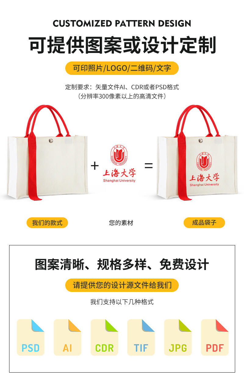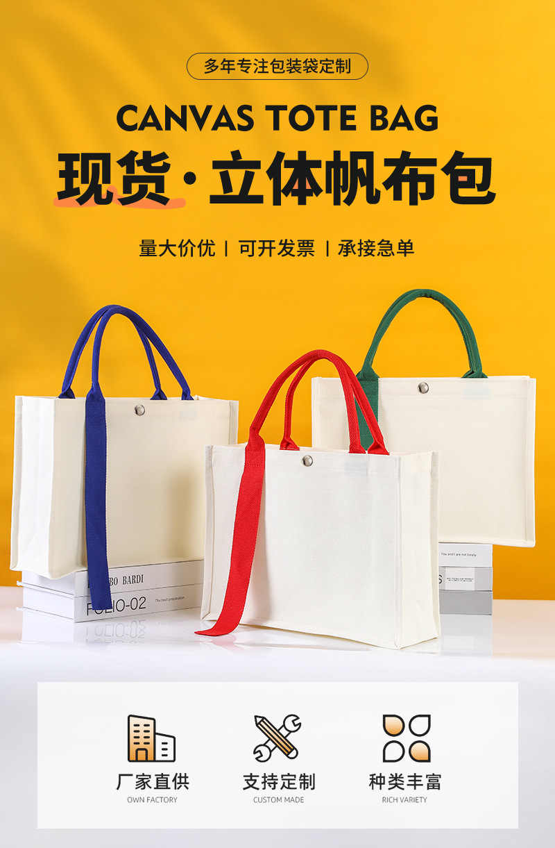in stock ribbon canvas bag custom logo high-end three-dimensional canvas bag school enterprise film tote bag printed pattern 中文版