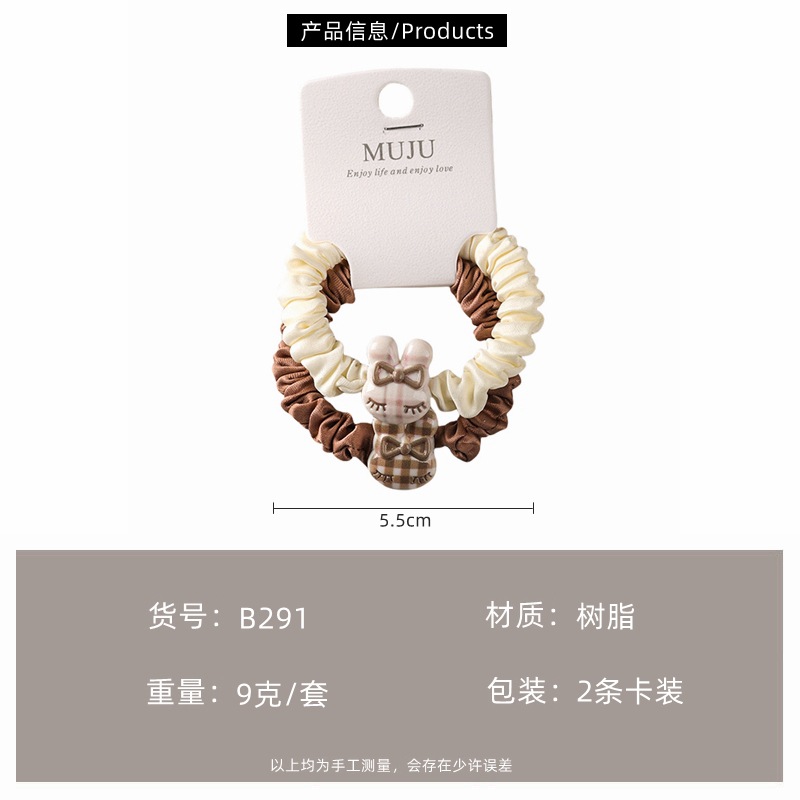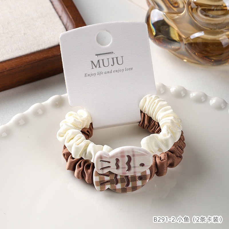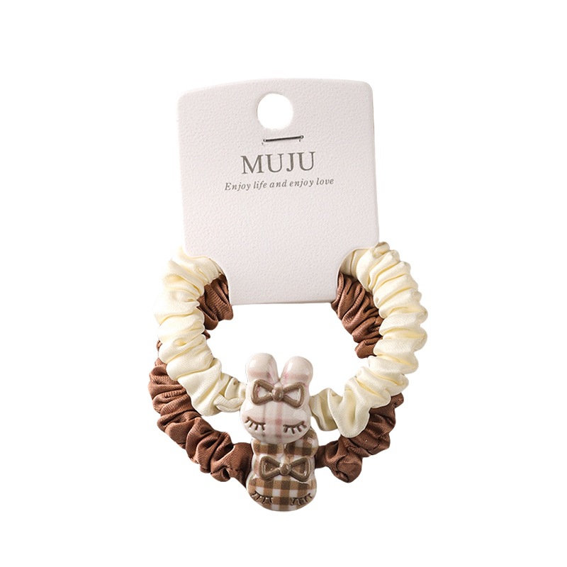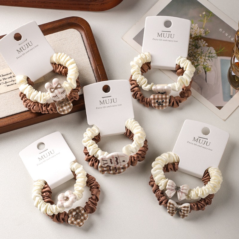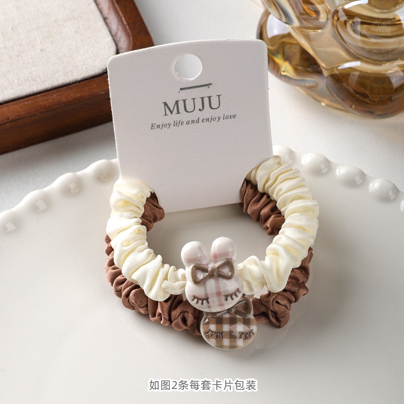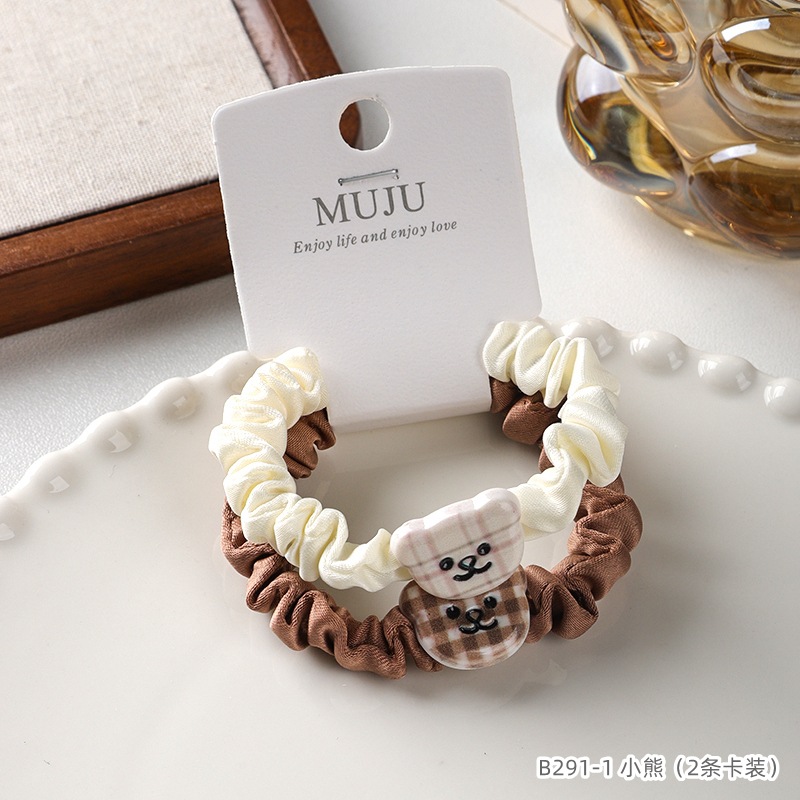 2 cards hair rope simple brown small intestine hair ring cute cartoon animal headband hair accessories tie ponytail rubber band