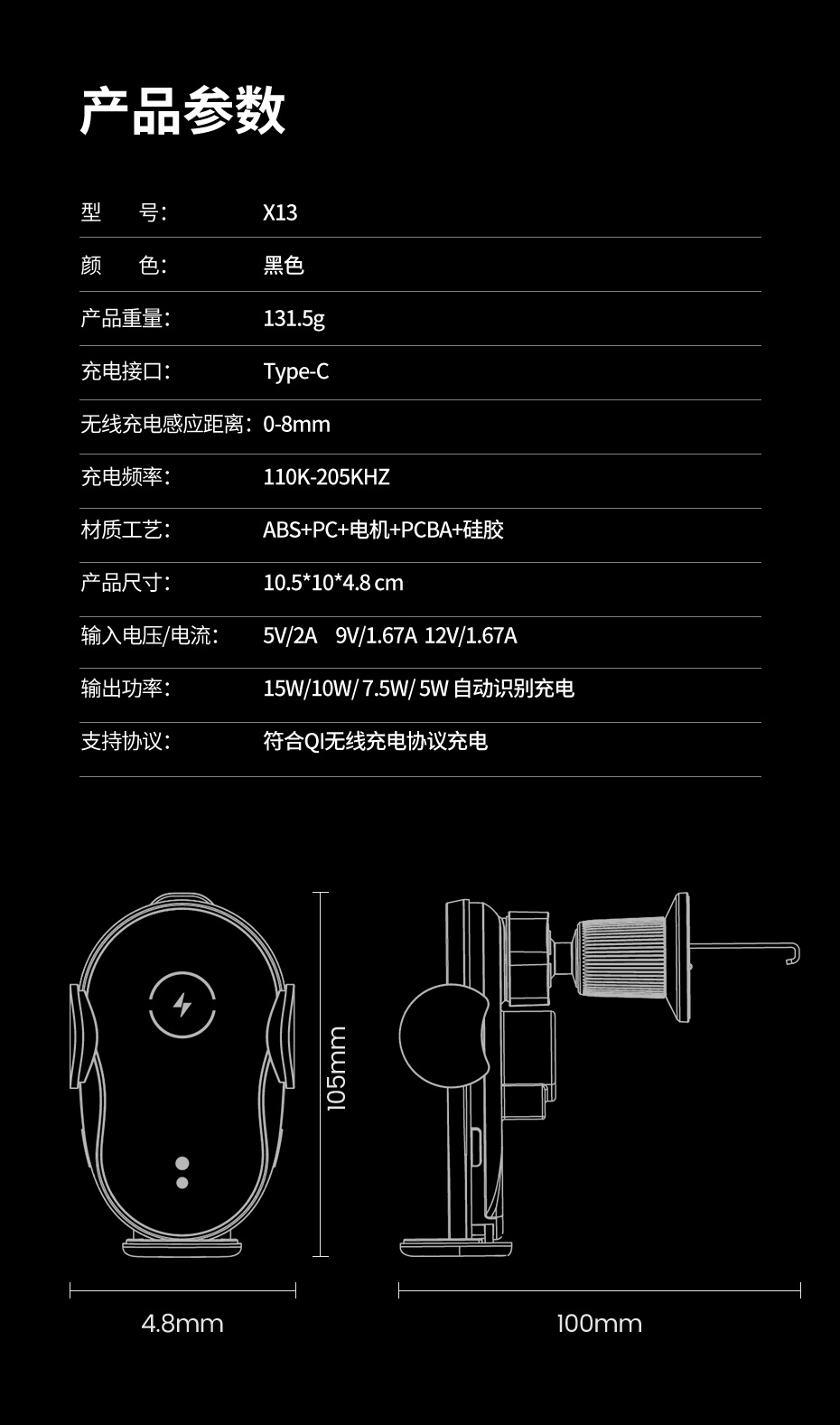 Charging distance:0-8mm