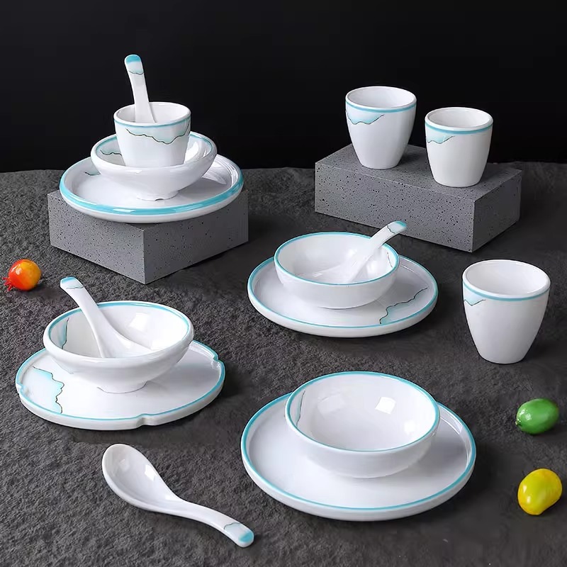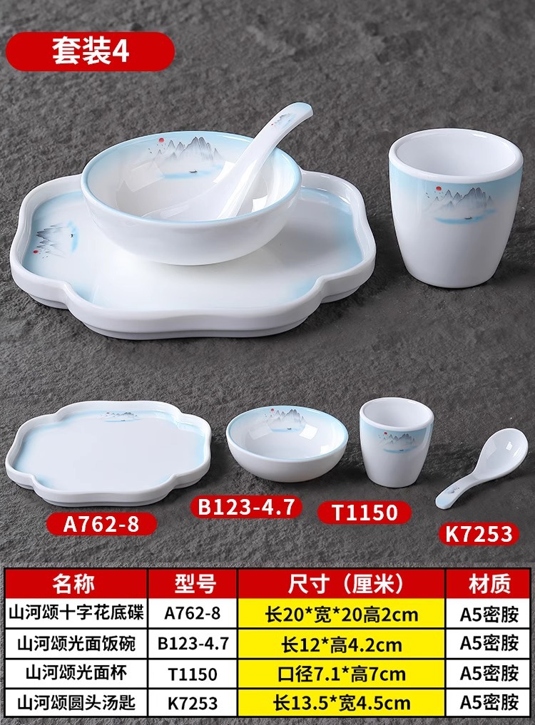 melamine plastic table decoration 4 pcs set bone dish cup restaurant tableware commercial creative hotel private home cuisine club bowl and chopsticks