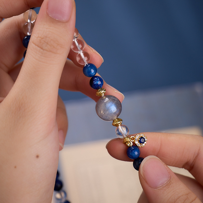 Main materials: Blue quartz, white crystal, gray moonlight, copper-plated gold accessories