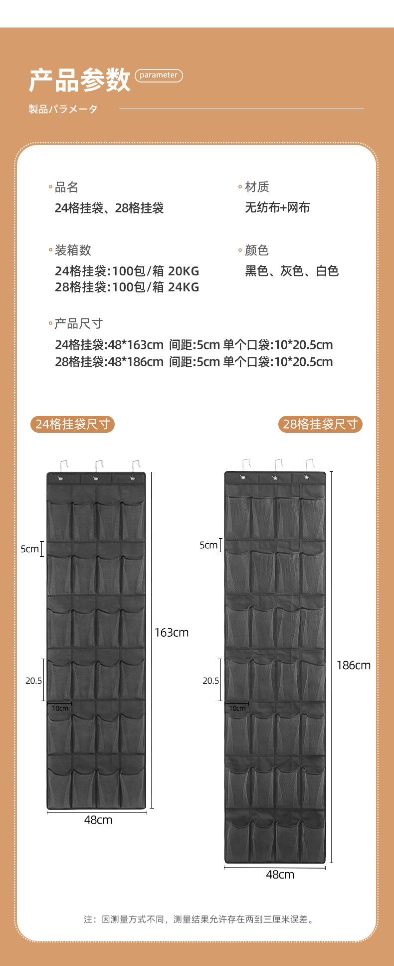 24 grid hanging bag gray