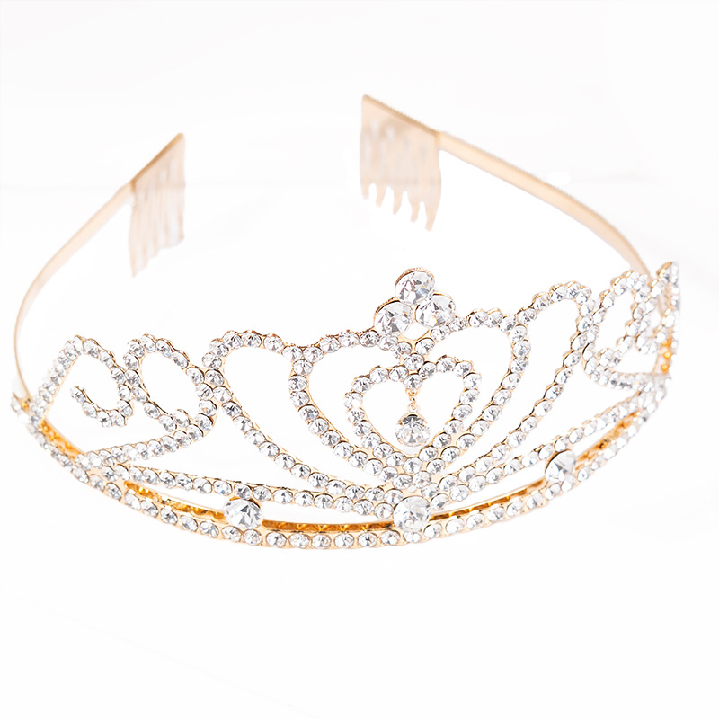cross-border foreign trade european and american new love pendant rhinestone bridal crown women's wedding wedding full diamond headdress wholesale 中文版