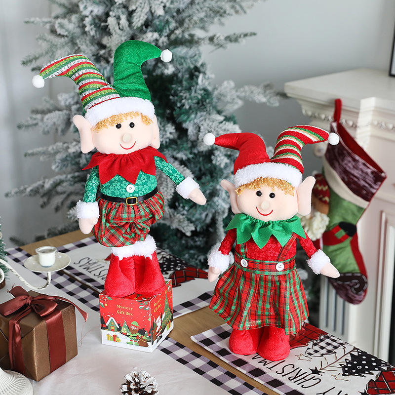 christmas decoration elf doll christmas gift retractable christmas elf doll under christmas tree dress up props 中文版