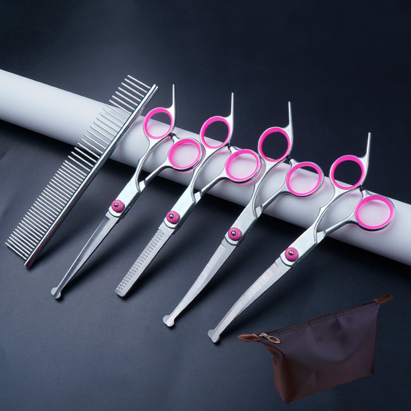 fish mouth straight snips + thinning scissors + upturned + steel comb + bag