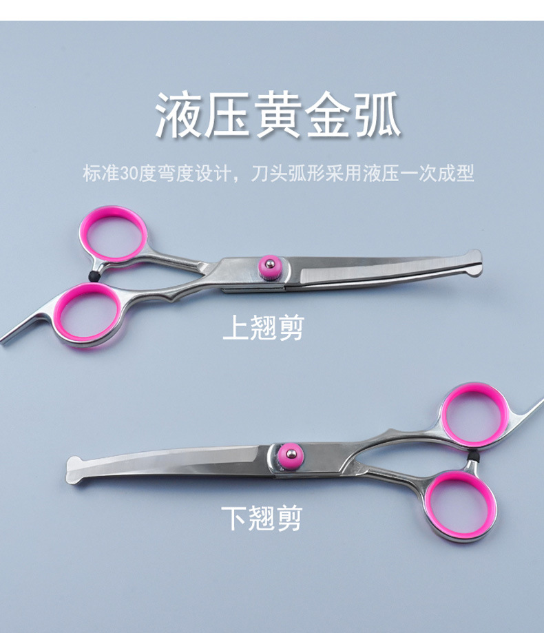 blue fish mouth straight scissors + thinning scissors + upturned + downturned + steel comb + bag