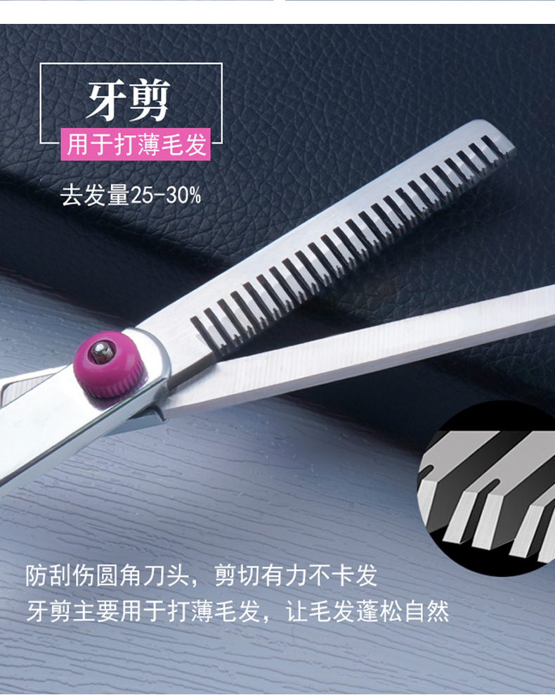 blue fish mouth straight scissors + thinning scissors + lower warped + steel comb + bag
