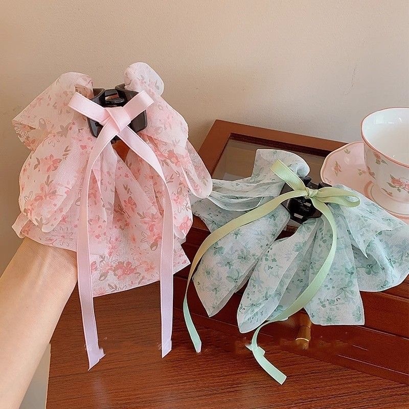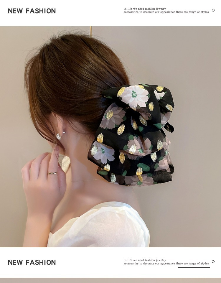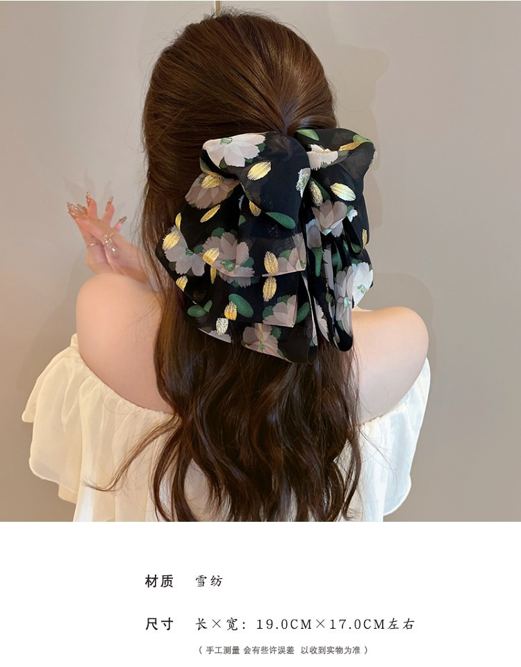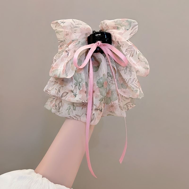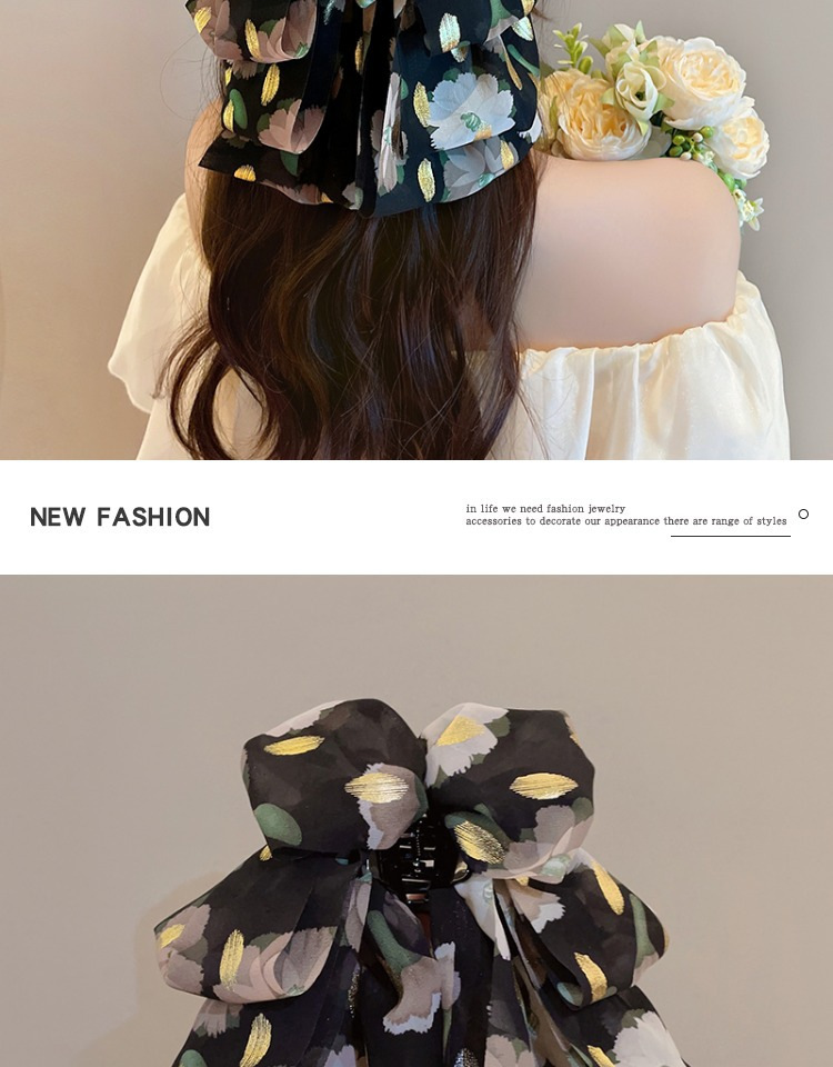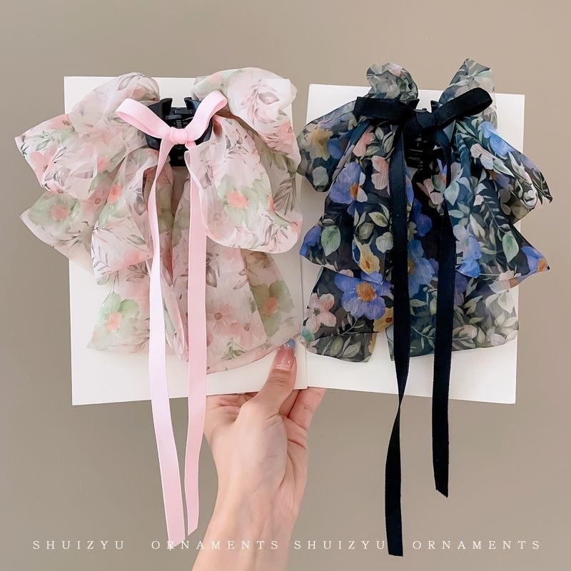 vintage floral bow claw clip women's new high-grade half tie barrettes back head updo shark clip hair accessories 中文版