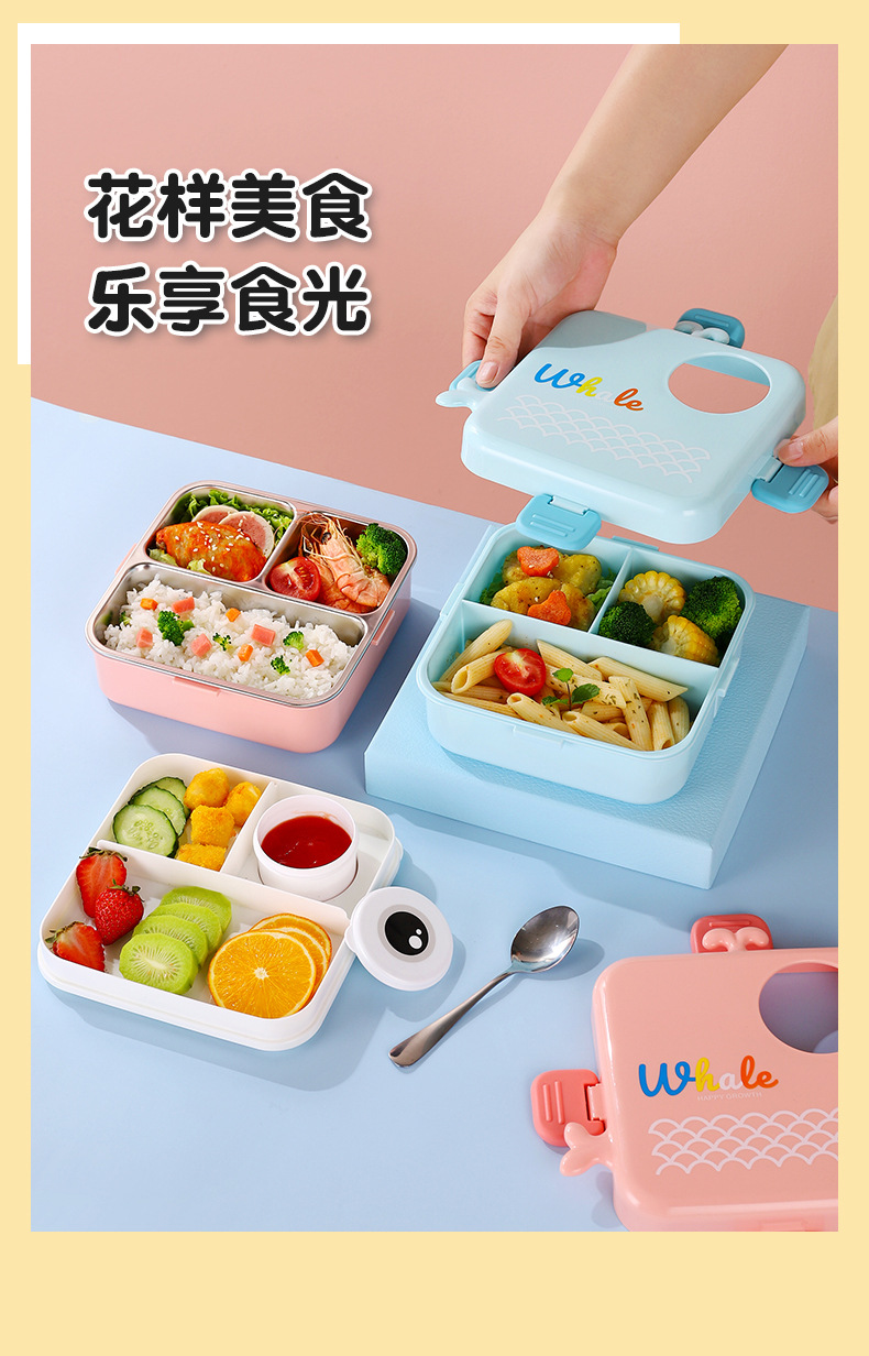 HXD6651-66552 Whale Square Stainless Steel Lunch Box