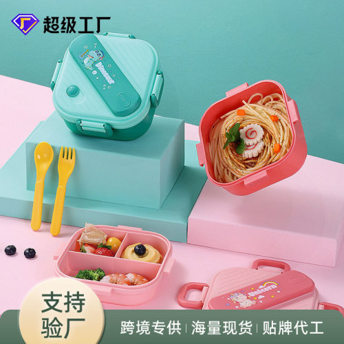 HXD6626 Children's Square Cartoon Lunch Box with Tableware Lid